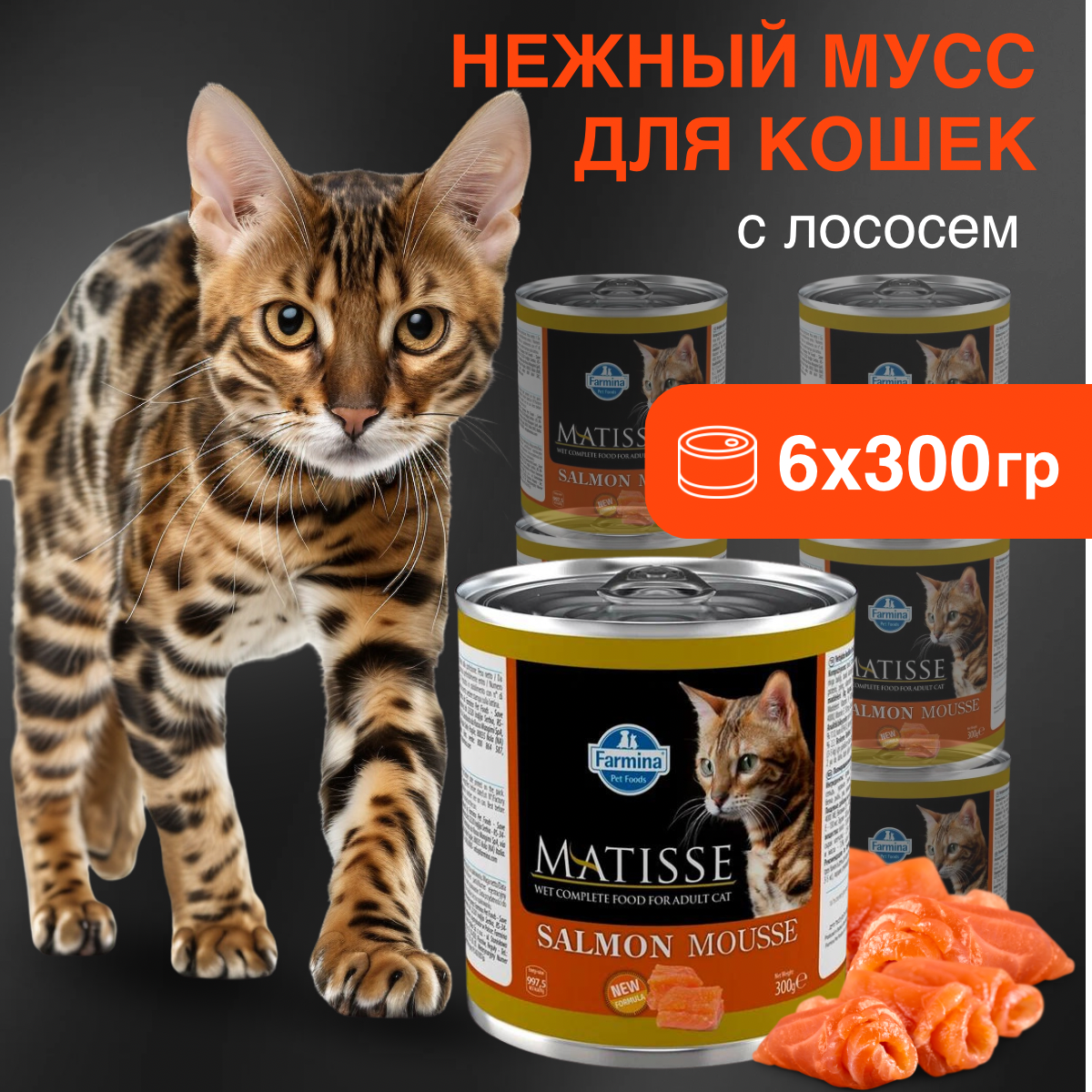 Консервы Фармина Матис Мусс для кошек Лосось (цена за упаковку) 300г х 6шт