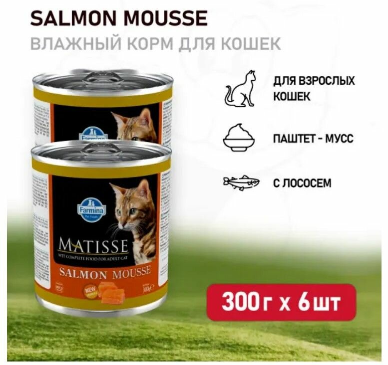 Влажный корм для кошек Farmina Matisse, с лососем 6 шт. х 300 г (мусс)
