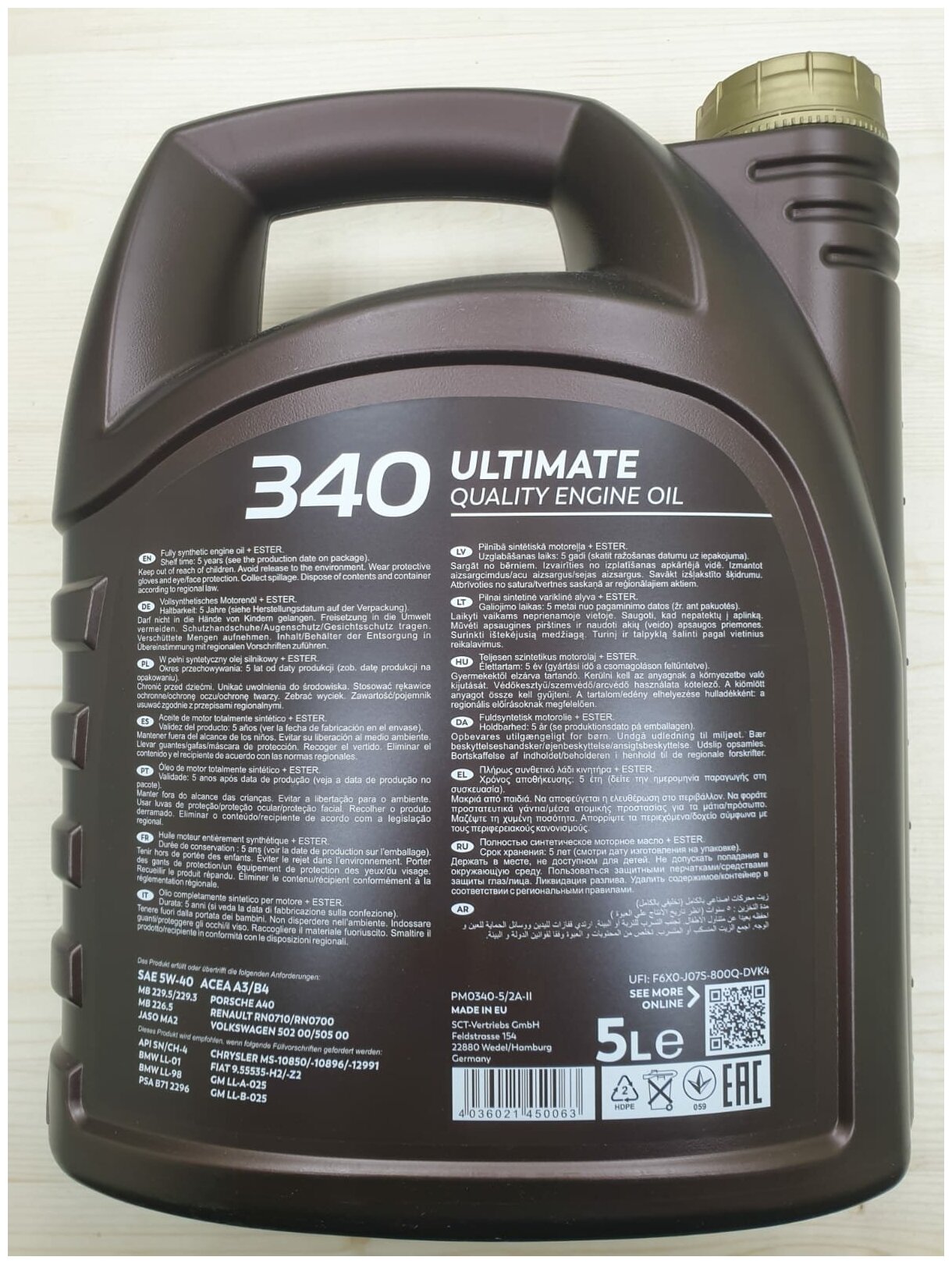 | Допуски OEM | VW 502.00/505.00 / PSA B71 2296 / VW 505.00 / VW 502.00 / Chrysler MS 12991 / BMW Longlife-01 / Renault RN 0710 / MB 226.5 / PORSCHE A40 / MB 229.3 / FIAT 9.55535-H2 / Renault RN 0700 / GM-LL-A-025 / GM-LL-B-025 / FIAT 9.55535-Z2 / MB 229.5 / BMW Longlife-98 / Chrysler MS 10850 |
