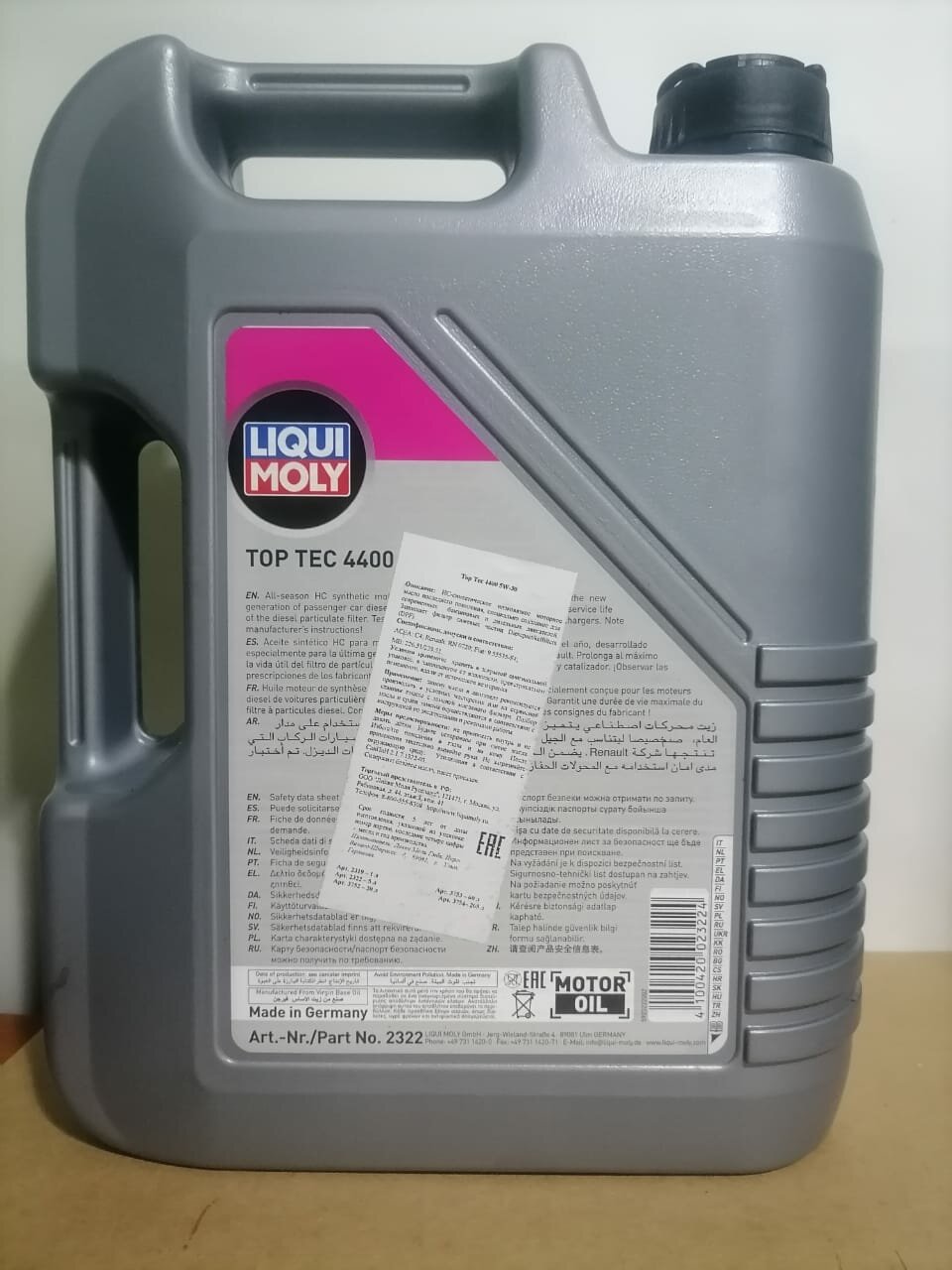 Ниже Вы можете прочитать отзывы на 2322 LIQUI MOLY Top Tec 4400 5W-30 - 5 л. - Моторное масло, ознакомится с подробными характеристиками, посмотреть интересные обзоры и фотографии на 2322 LIQUI MOLY Top Tec 4400 5W-30 - 5 л. - Моторное масло.