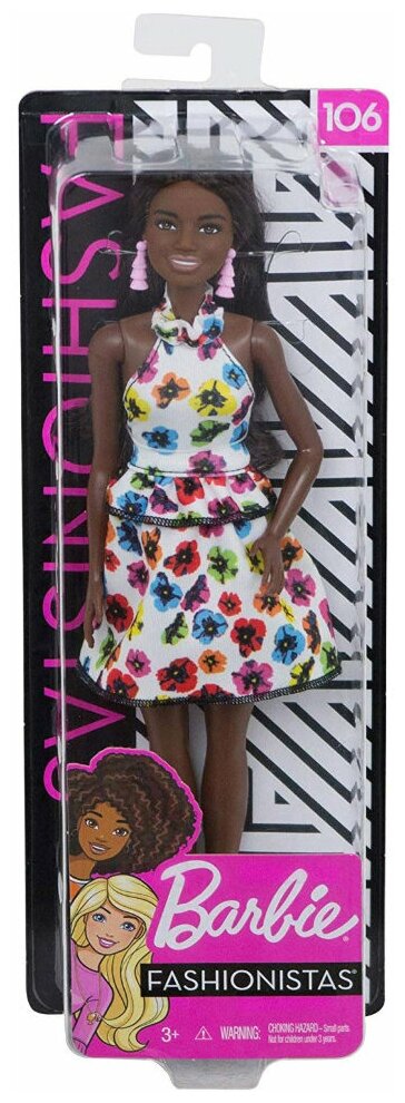 Кукла Barbie Fashionistas со светлым хвостиком и цветочным платьем HJT02