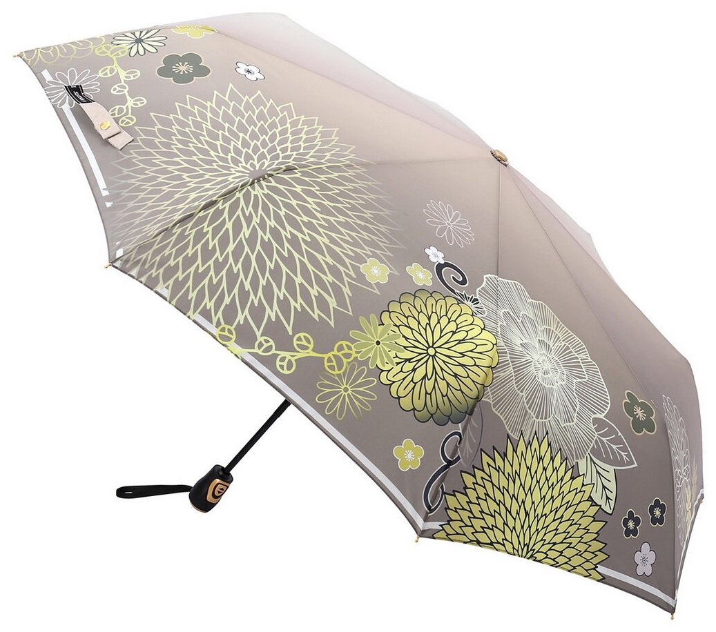 Зонт "Три Слона" женский №310-5, купол D=103 см, 10 спиц, суперавтомат бежево-черный