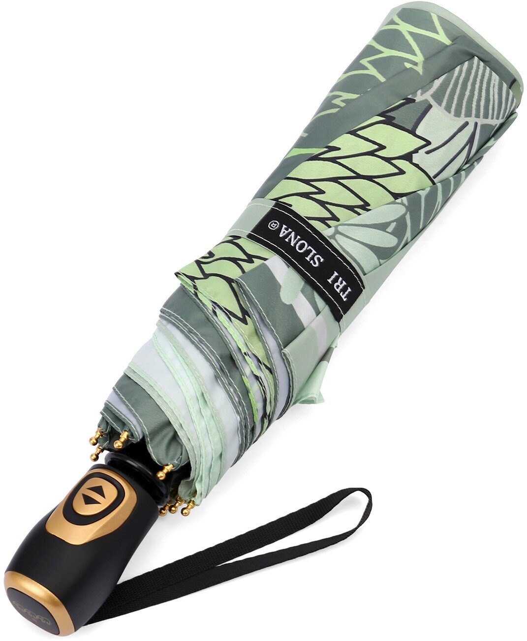 Зонт женский ТРИ слона, 3 сложения автомат, зеленый