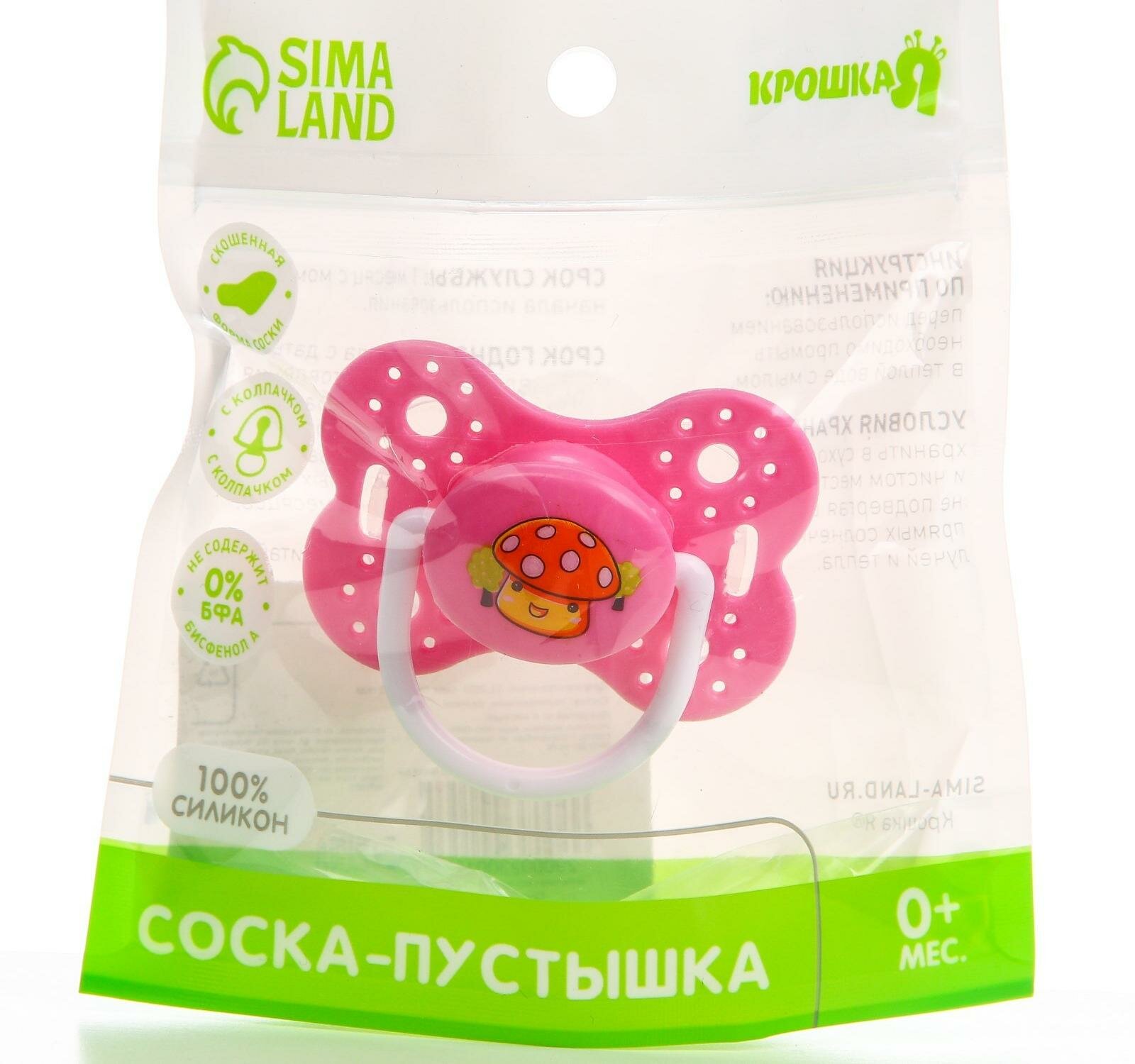 Пустышка ортодонтическая, силикон, от 0 - 3 мес., "Грибочек", цвет розовый интересное: