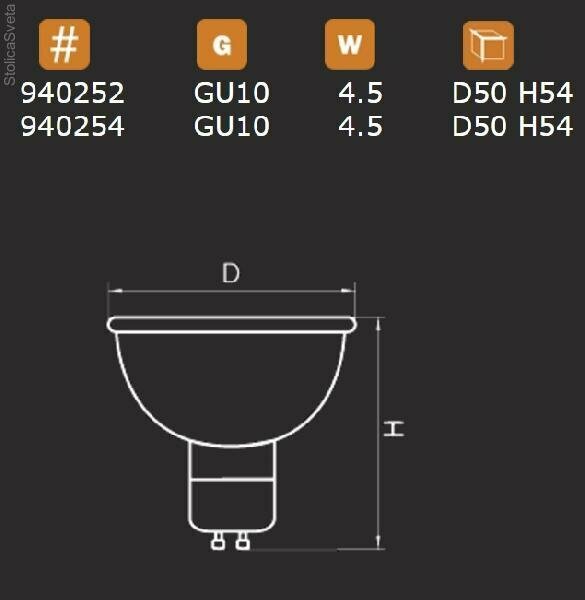 Лампа светодиодная Lightstar 940252 GU10-4,5W(45W)-2800K-220V-HP16