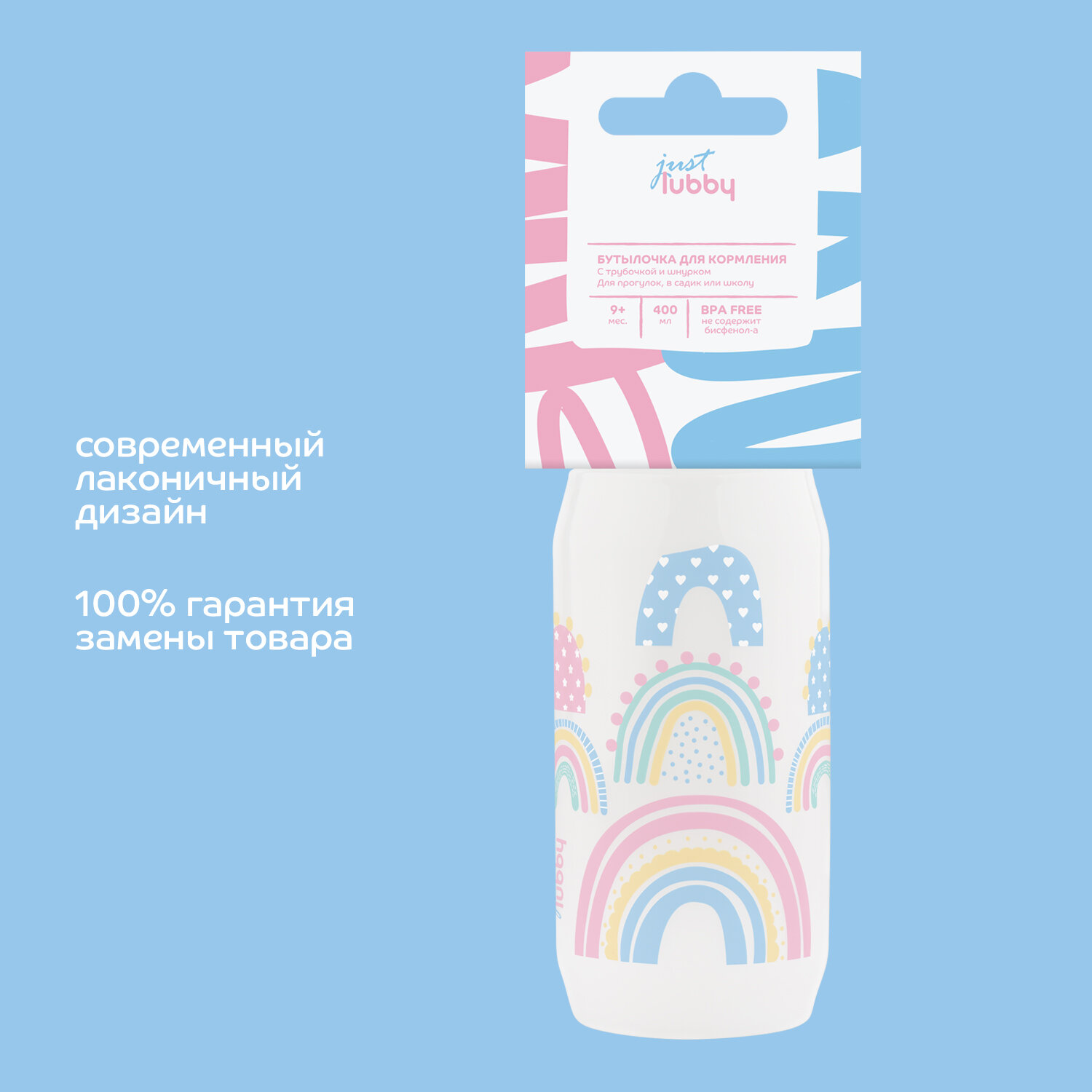 Lubby Бутылочка Поильник с трубочкой Радуга 400мл 9+