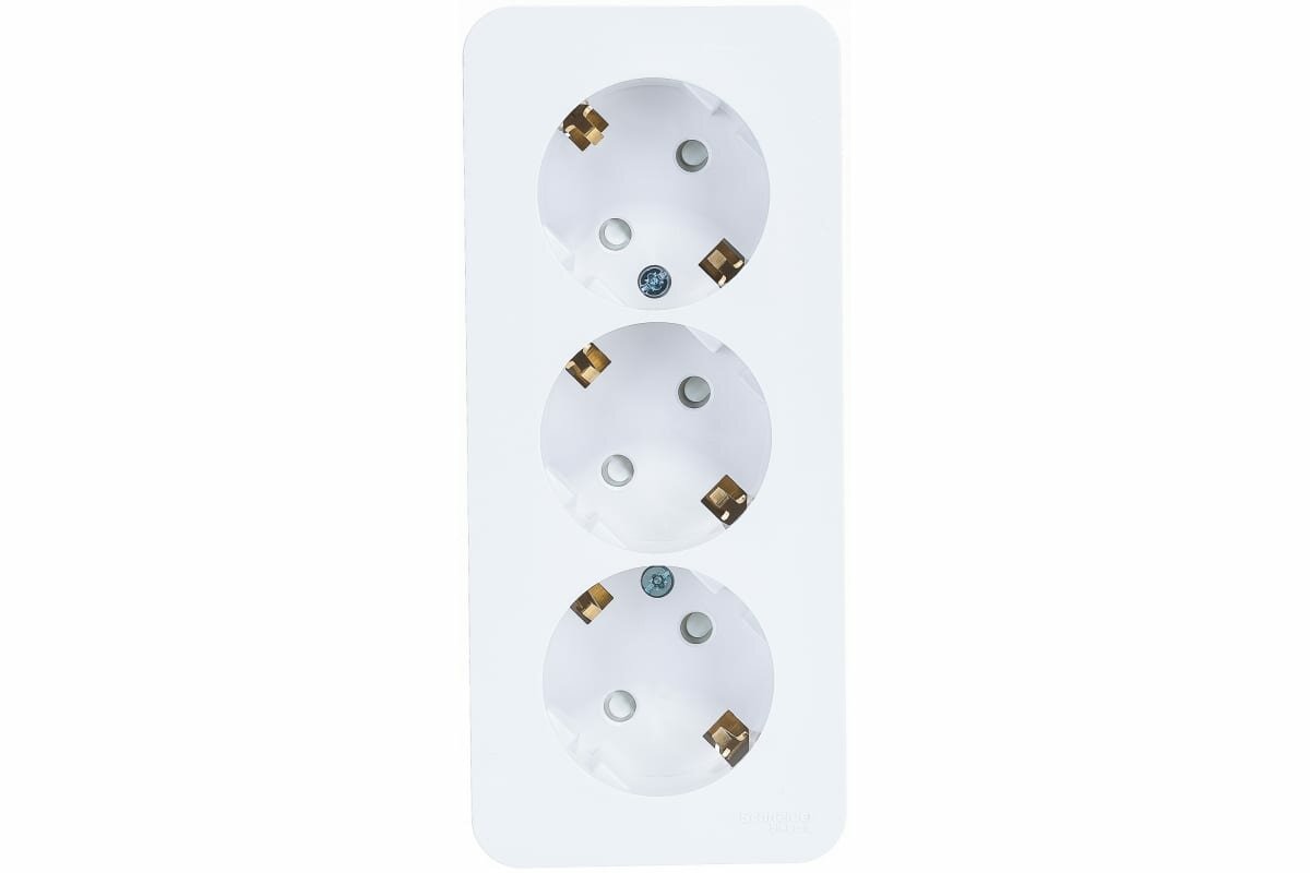 Розетка Schneider Electric Blanca четырехместная с заземлением с защитными шторками белая для открытой проводки (комплект из 3 шт)