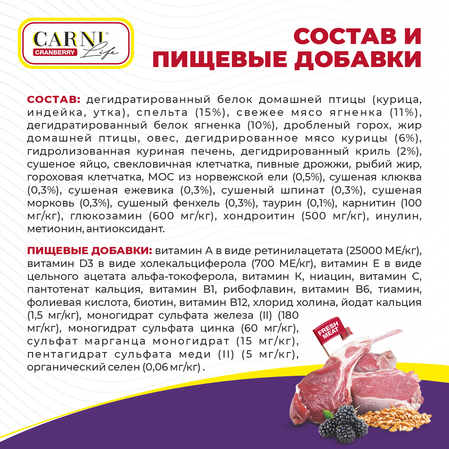 Сухой корм Carni Life Mini (Карни) для взрослых собак мелких пород, ягненок с ежевикой и клюквой, 2,5 кг