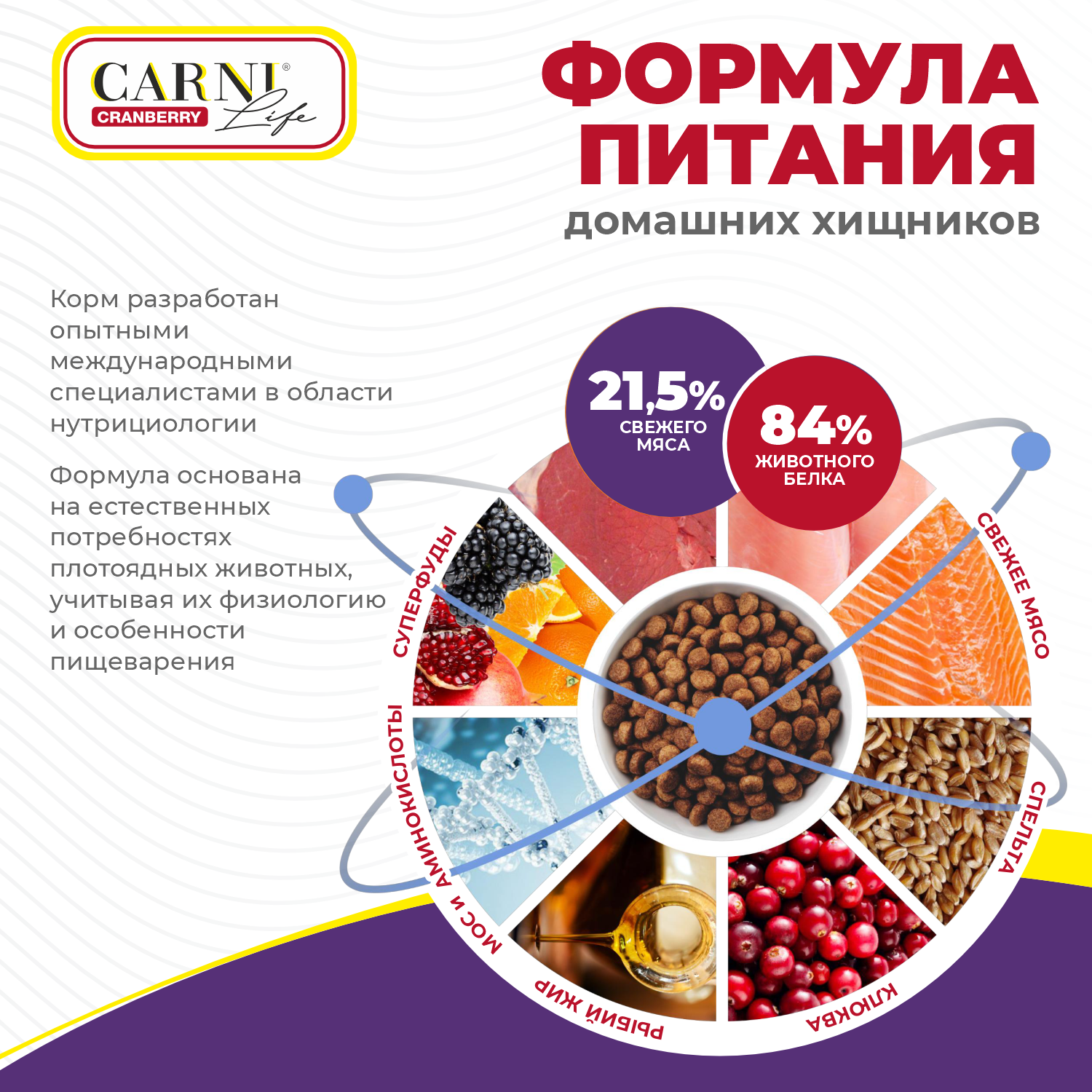 Сухой корм Carni Life Mini (Карни) для взрослых собак мелких пород, лосось с апельсином и клюквой, 2,5 кг