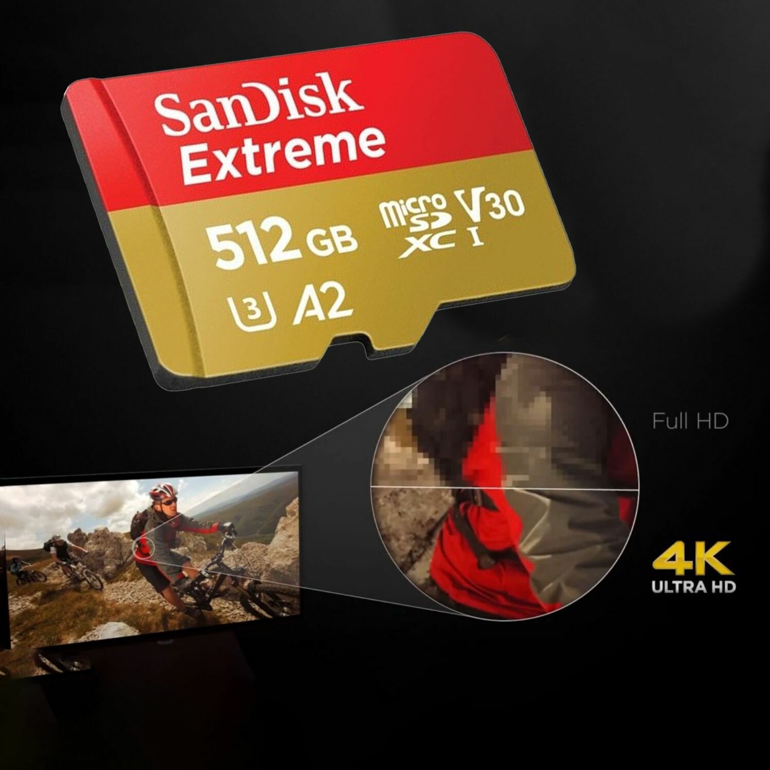 Карта памяти 512Gb - SanDisk Extreme Micro Secure Digital XC Class 10 UHS-I A2 C10 V30 U3 SDSQXAV-512G-GN6MN