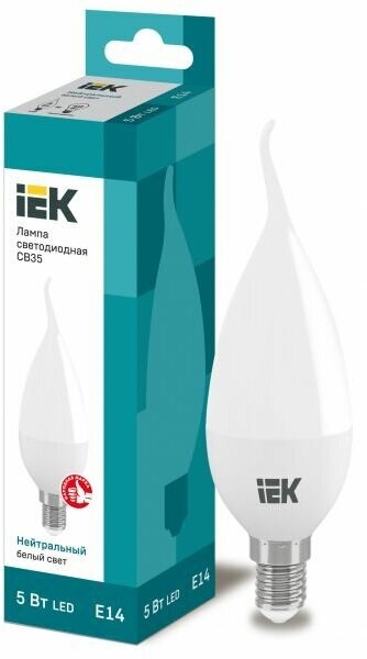 Лампочка IEK светодиодная CB35 свеча на ветру 5Вт 230В 4000К E14