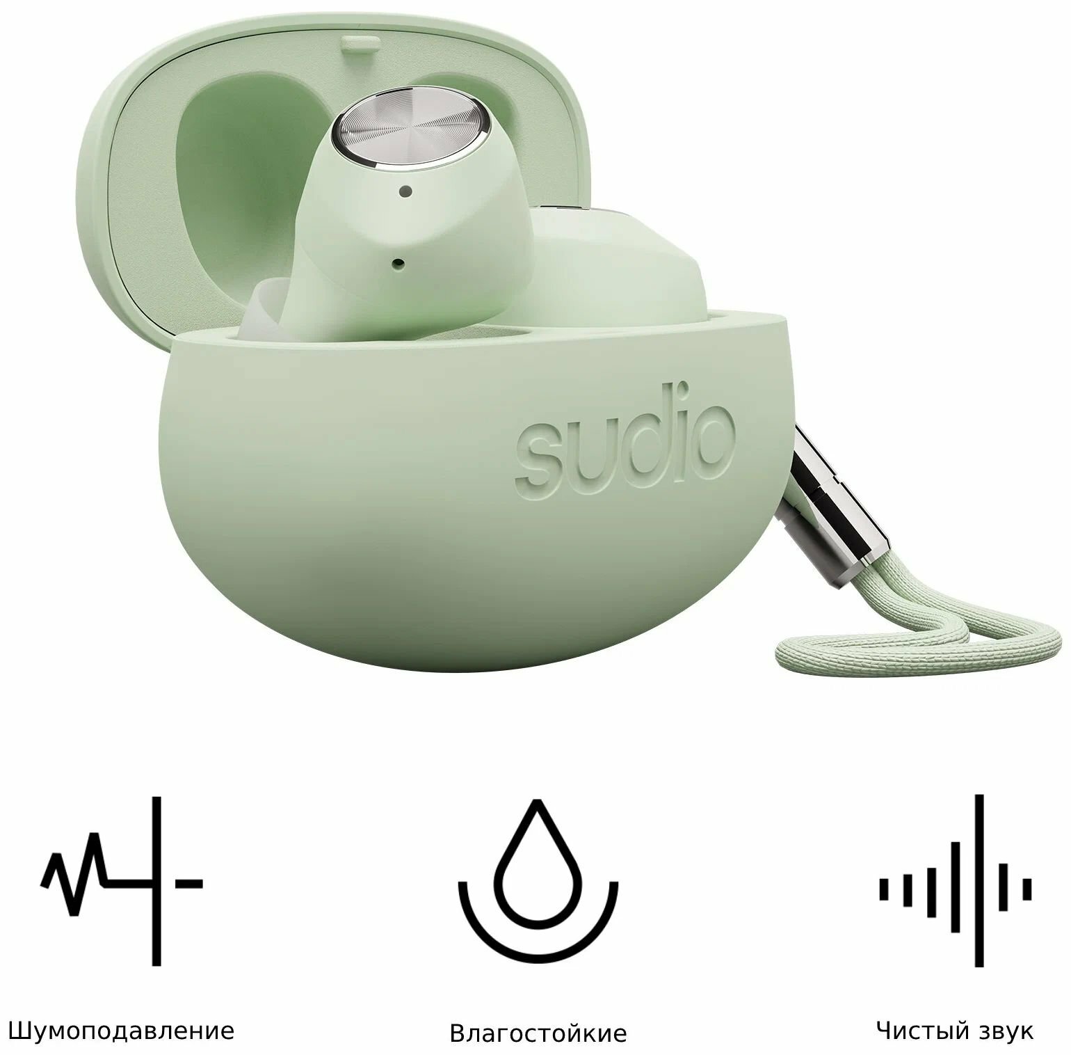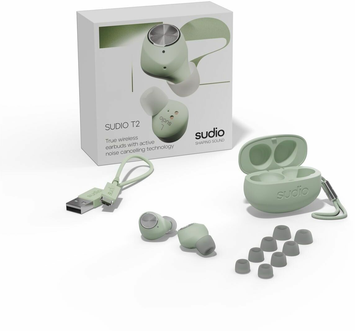 Беспроводные TWS наушники Sudio T2. Цвет зеленый