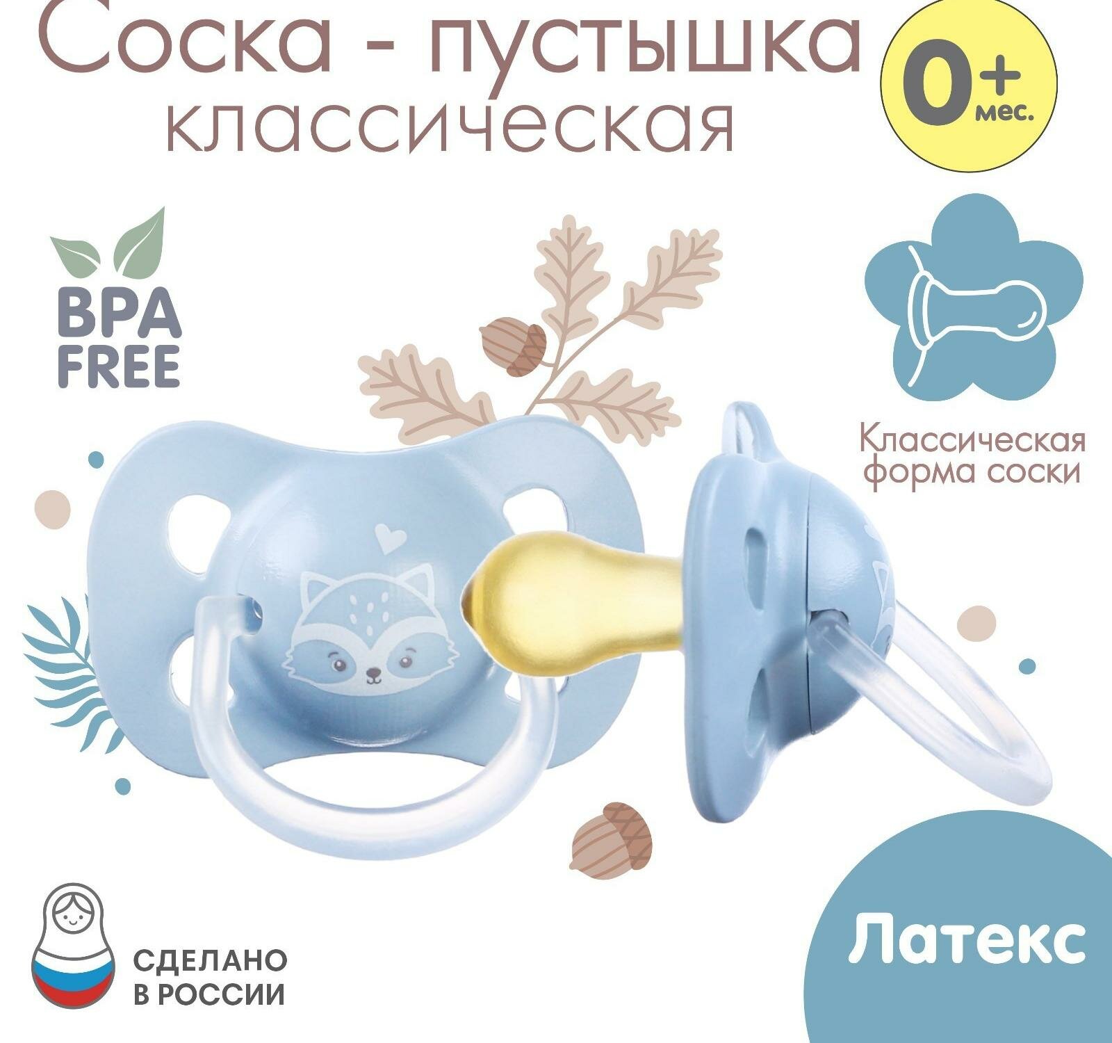 Соска - пустышка классическая, латекс, +0мес., «Енотик» интересное: