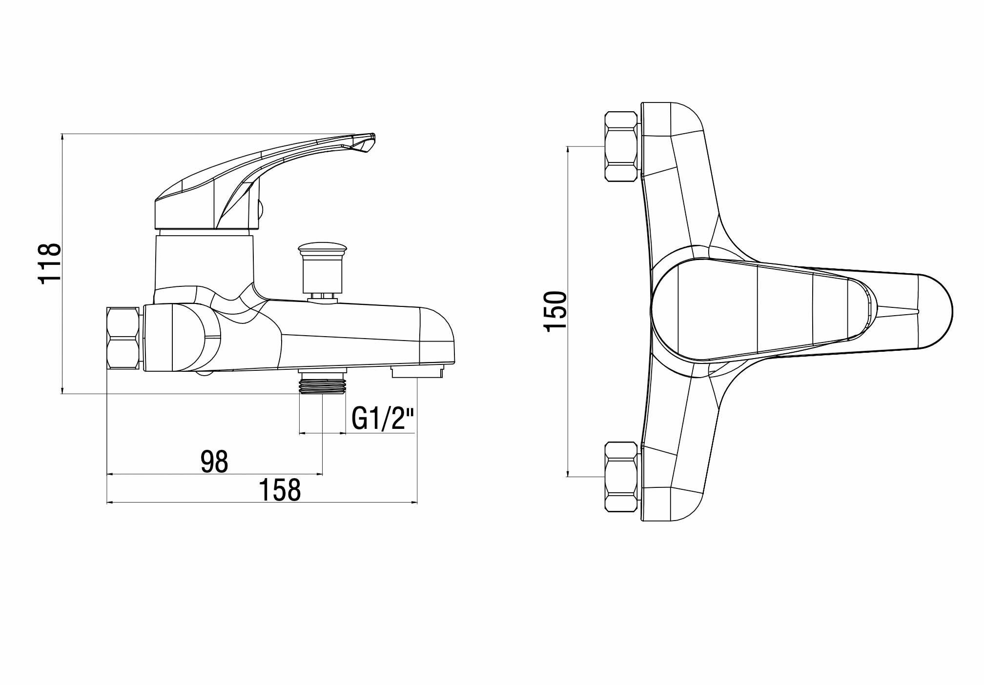 Смеситель для ванны OneLife однорычажный P01-100cr, хром