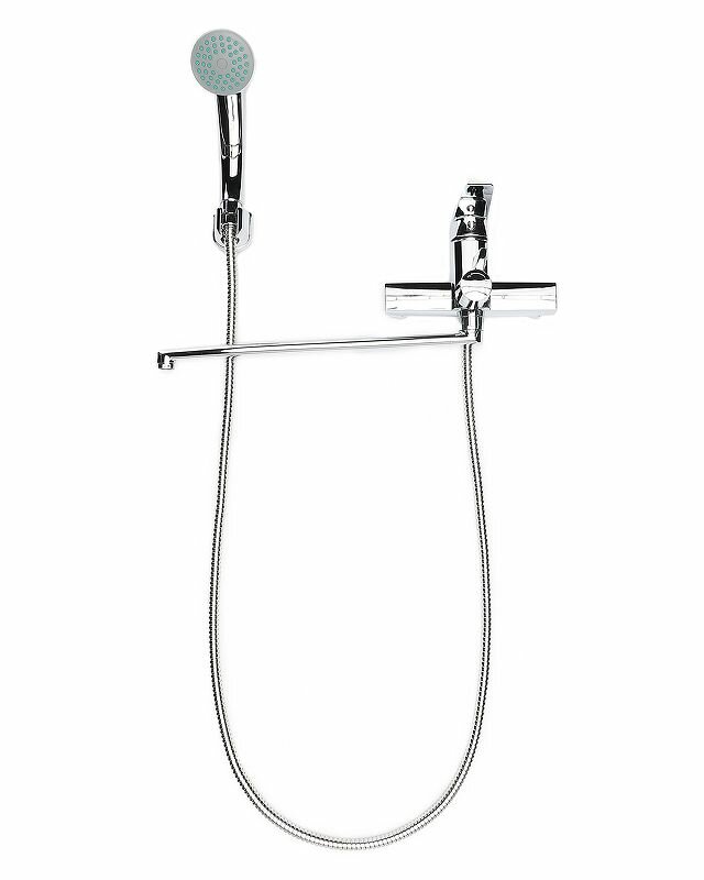 Смеситель OneLife P02-218cr для ванны с длинным изливом и душевым набором, хром