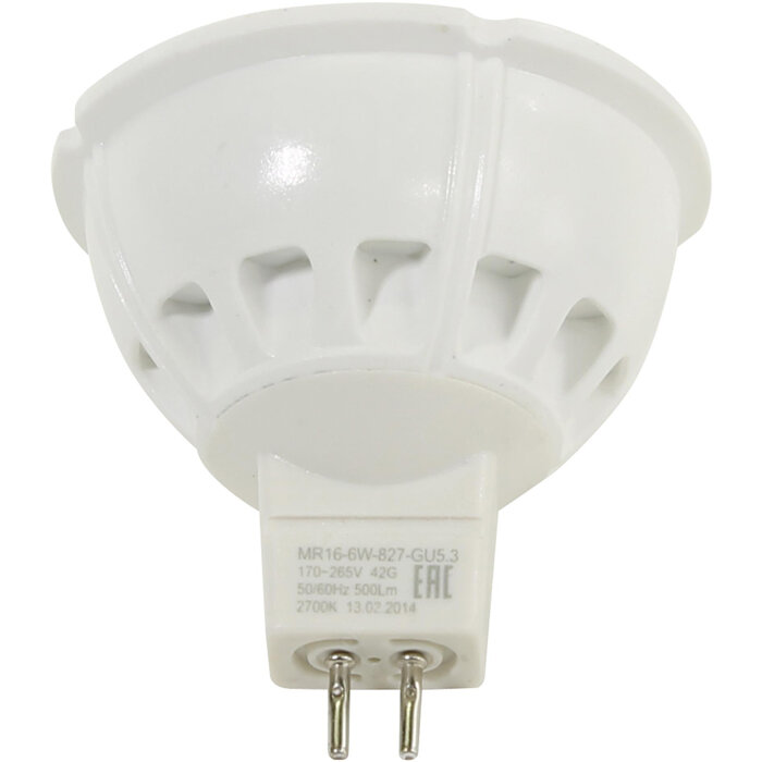 Лампа светодиодная ЭРА GU5.3 6W 2700K матовая LED MR16-6W-827-GU5.3 Б0020542
