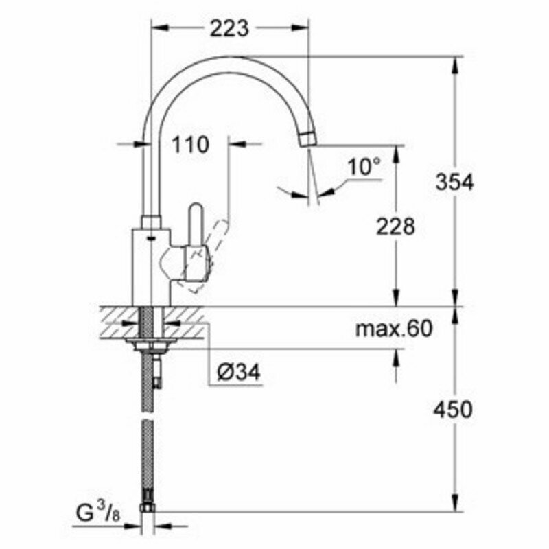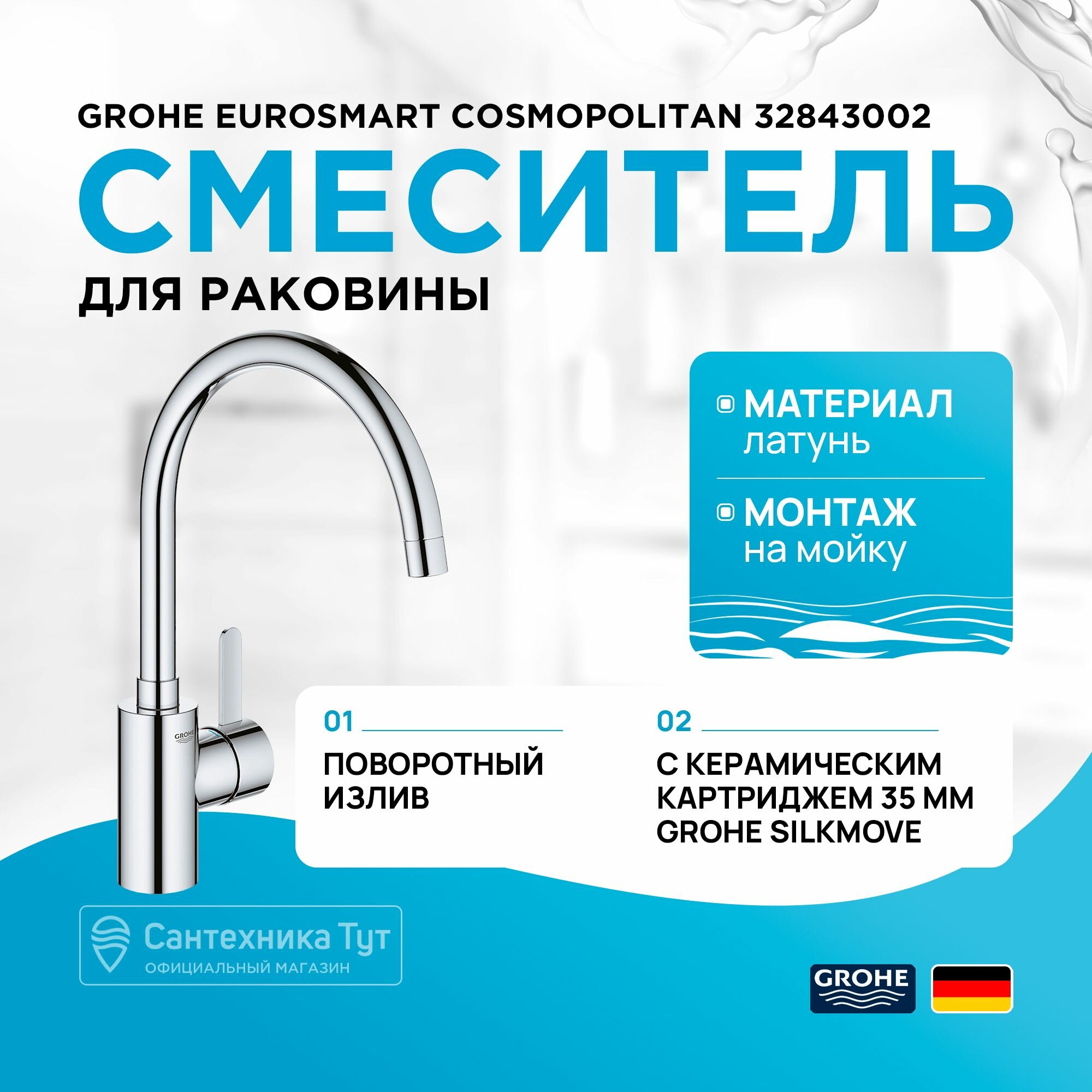 Смеситель для мойки GROHE Eurosmart Cosmopolitan 32843002 с высоким изливом