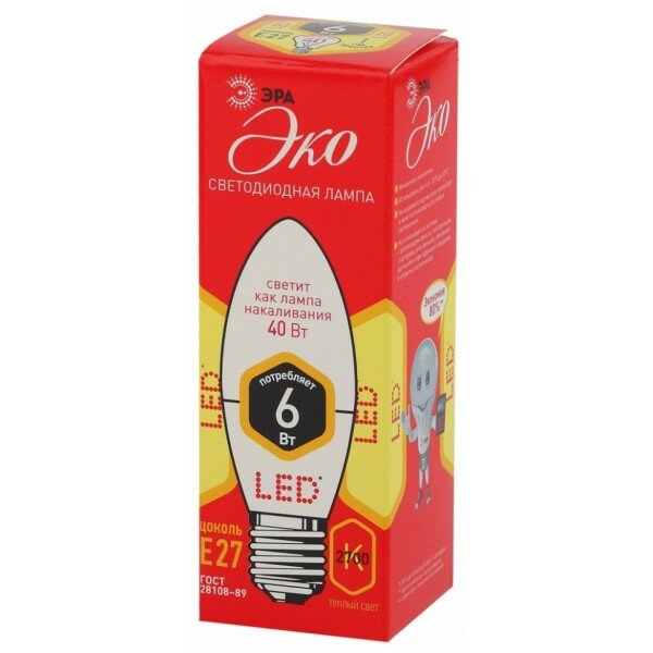 Купить ЭРА ECO свеча B35 E27 6W(480lm) 2700K 2K 110x37 B35-6w-827-E27 7077