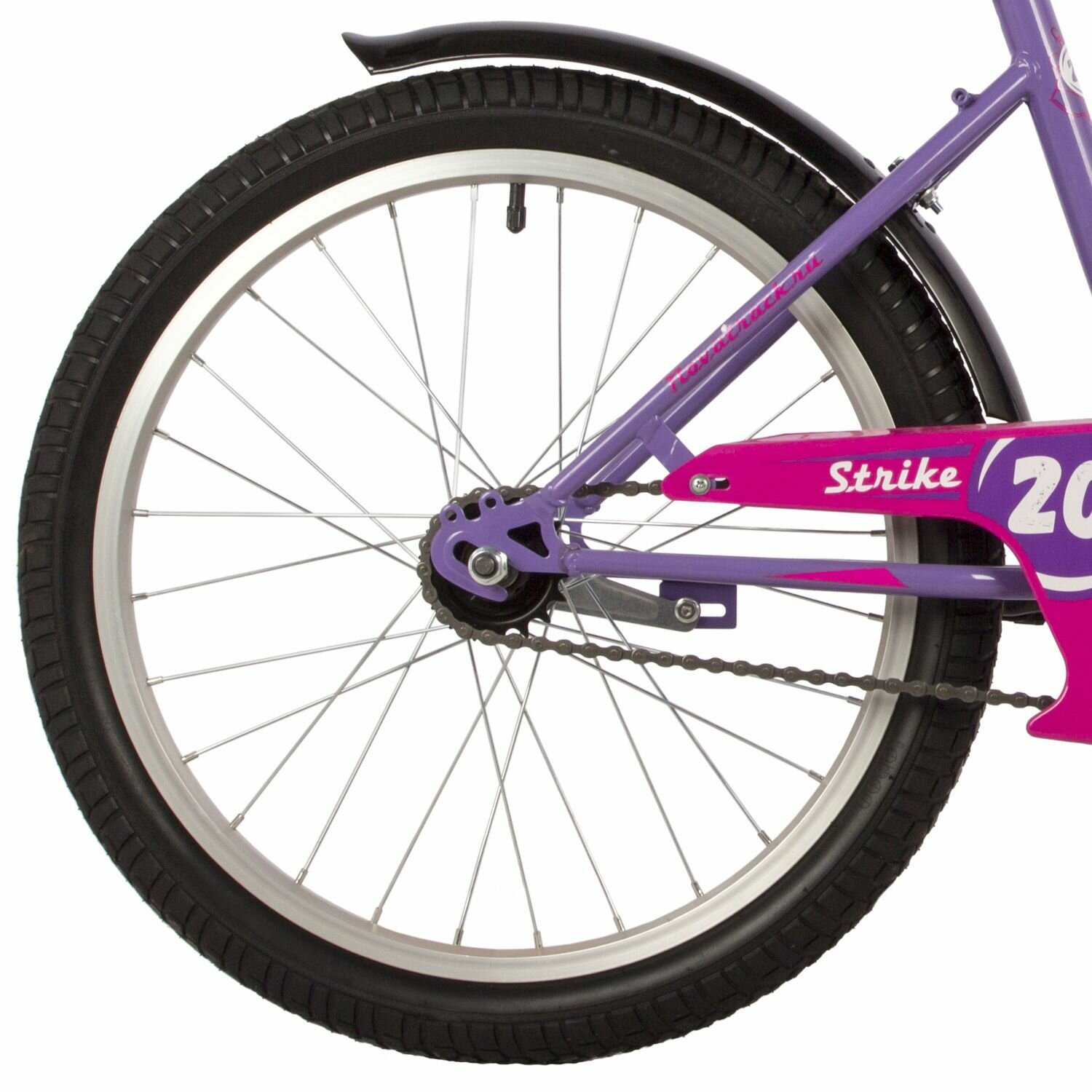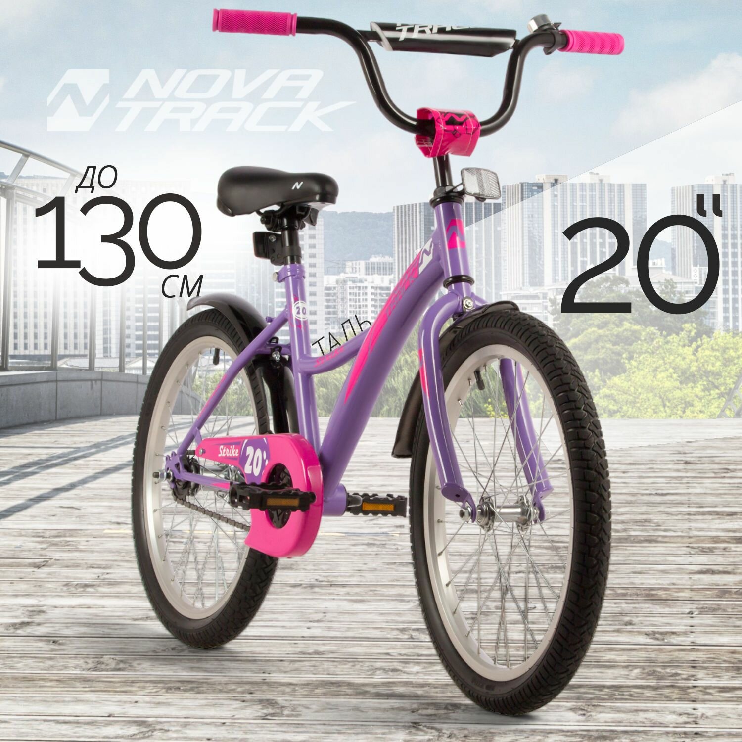 Велосипед NOVATRACK 20" STRIKE фиолетовый, тормоз нож, крылья корот, защита А-тип 203STRIKE.VL22