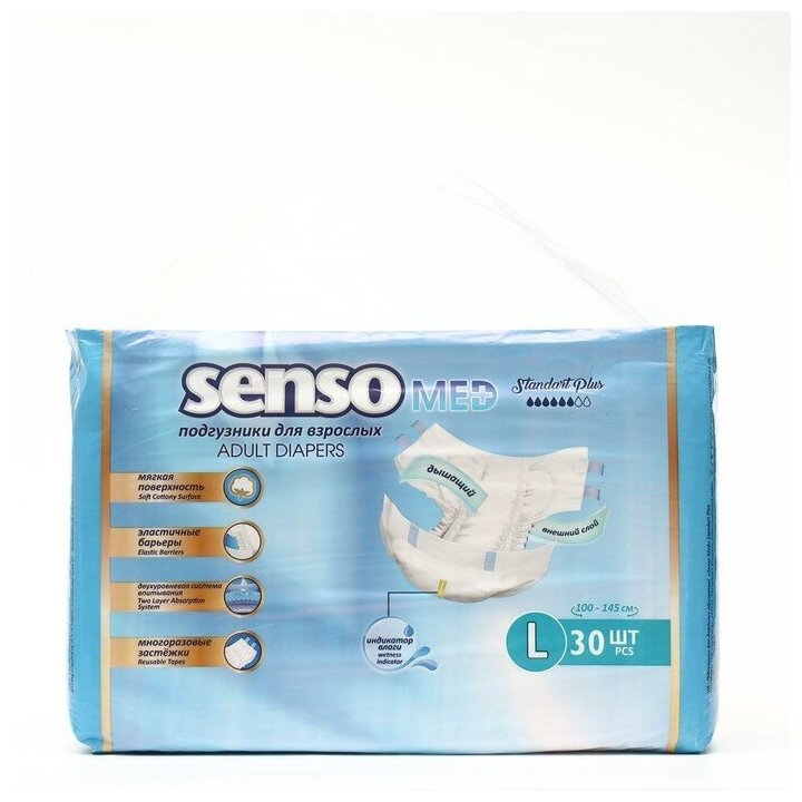 Подгузники для взрослых одноразовые "Senso MED" Standart Plus размер L (100-145 см) 30шт