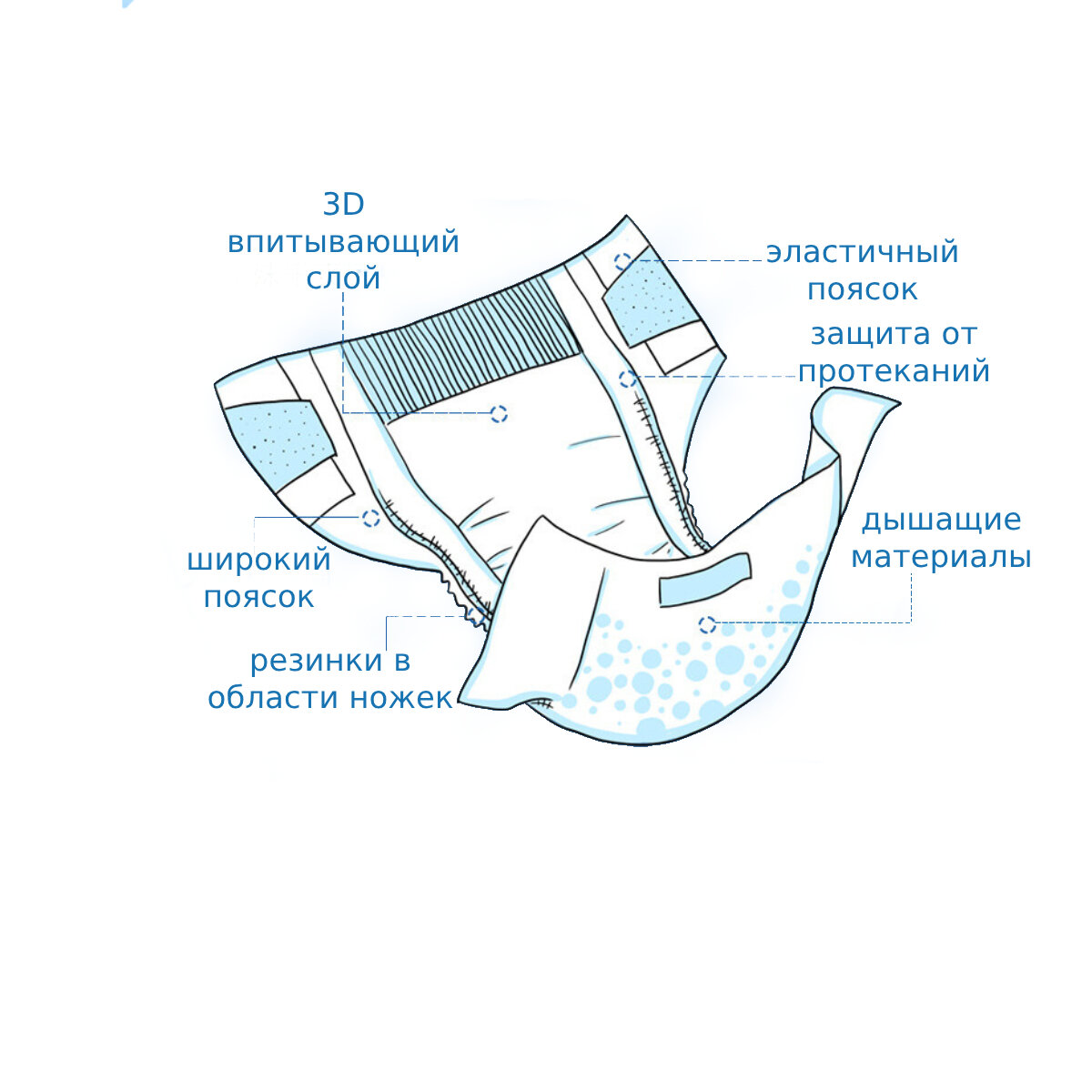 | Дополнительная информация | каждый подгузник имеет индивидуальную упаковку; застежка-молния (Zip-Lock) у упаковки |