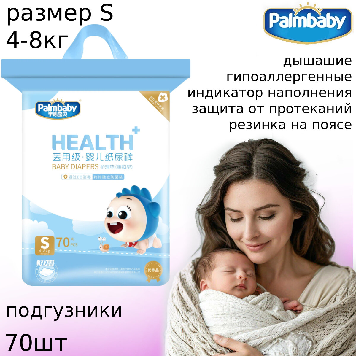 Подгузники детские Palmbaby HEALTH+ S (4-8 кг), 70 шт