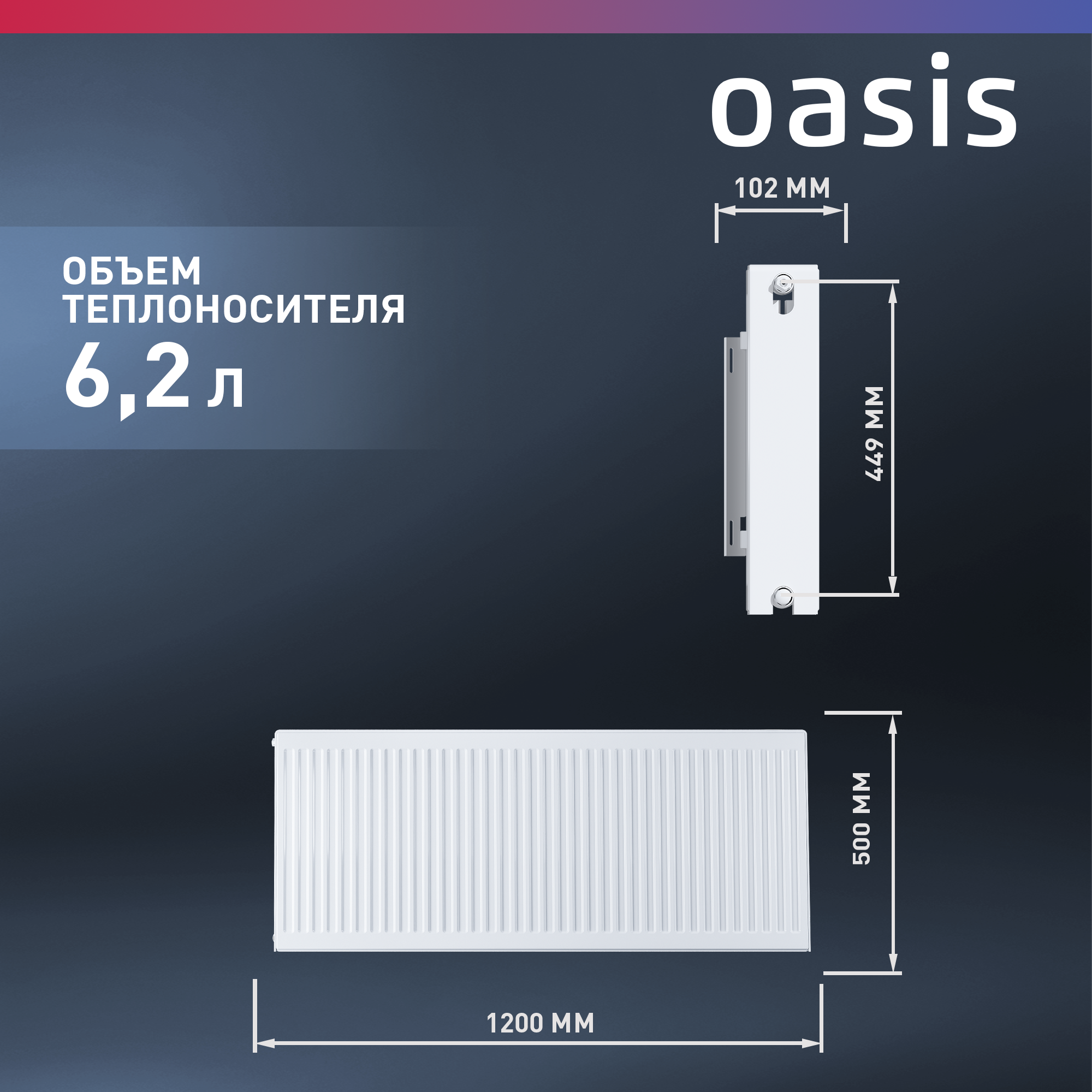 Радиатор отопления стальной, панельный, Oasis (боковое) C22х500х900