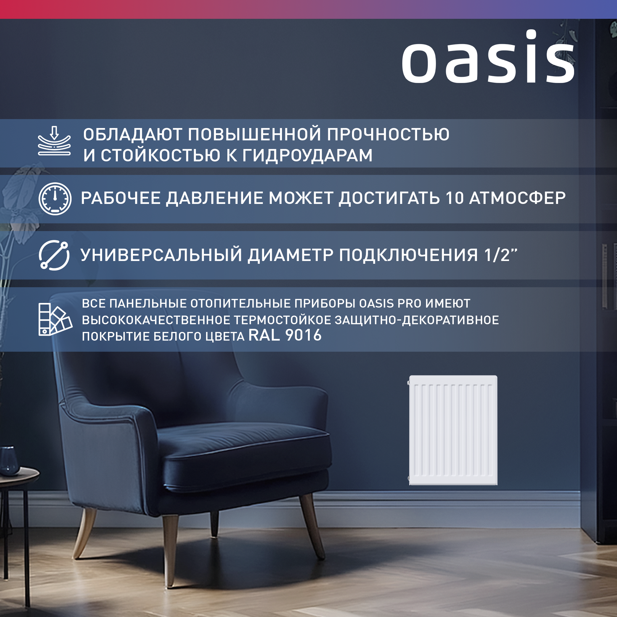 Радиатор отопления стальной панельный Oasis Pro PB 22-5-10, боковое подключение