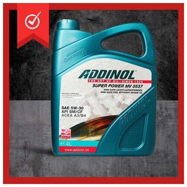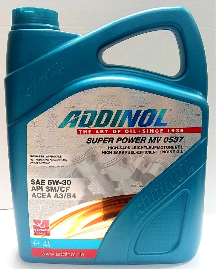 Ниже Вы можете прочитать отзывы на Масло моторное Addinol Super Power MV 0537 5W-30 (4л) AD-5W30-SP-4L, ознакомится с подробными характеристиками, посмотреть интересные обзоры и фотографии на Масло моторное Addinol Super Power MV 0537 5W-30 (4л) AD-5W30-SP-4L.