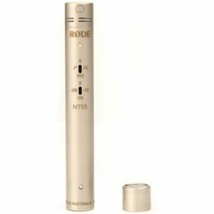 RODE NT55 конденсаторный кардиоидный микрофон с капсюлем 1/2”, трехпозиционный обрезной фильтр низких частот – линейный, 75Гц или 150Гц с трехпозиционным аттенюатором – 0дБ, -10дБ или -20дБ, частотный диапазон: 20Гц - 20кГц, чувствительность: -38 дБ 1В/П
