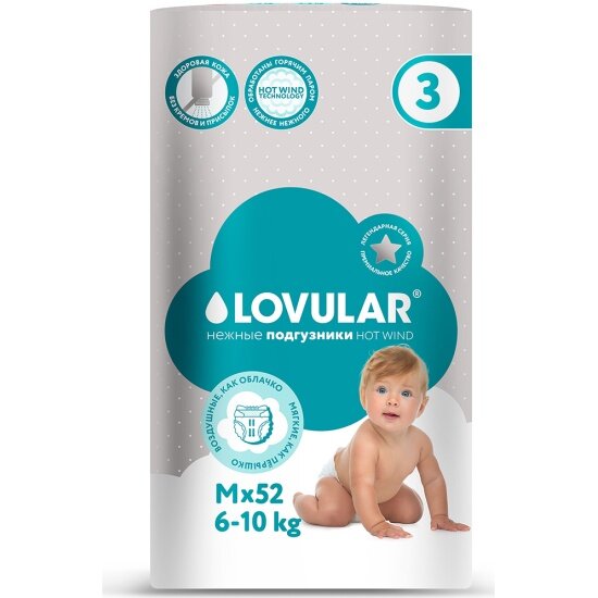 Подгузники Lovular HOT WIND M (6-10 кг.), 52 шт. интересное: