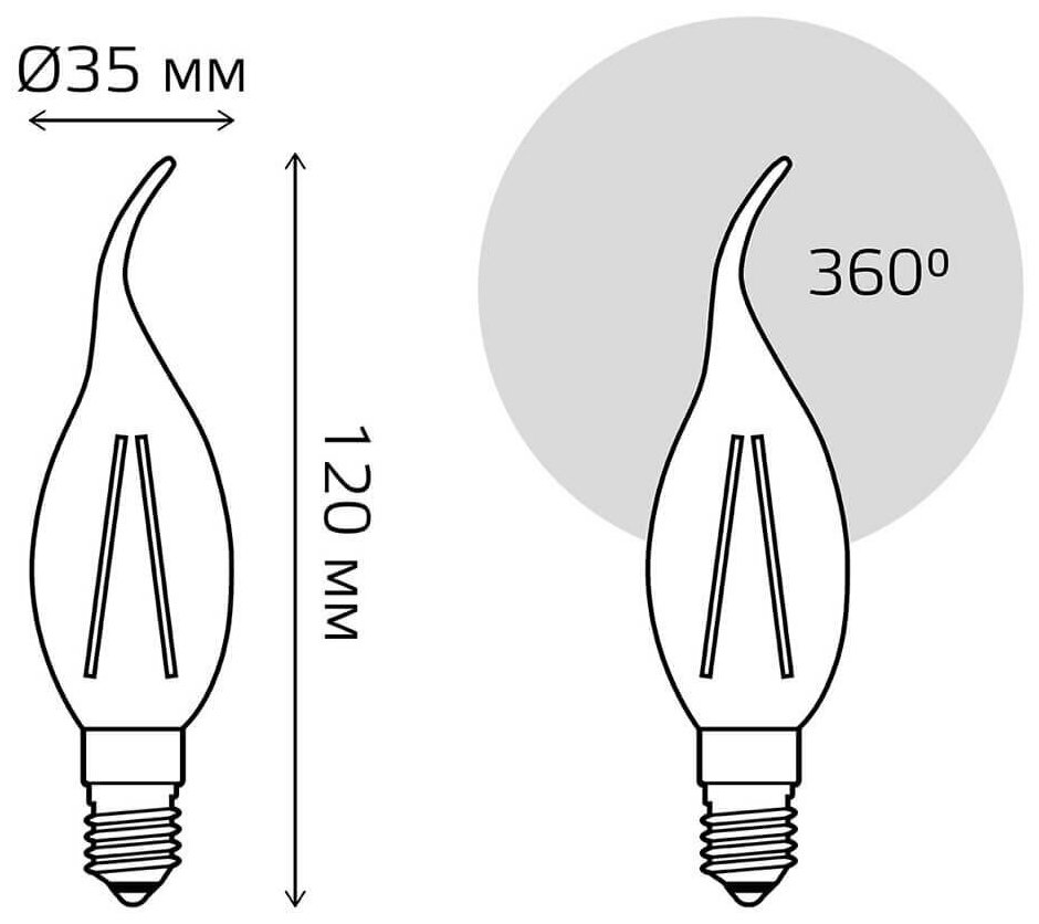 Лампа Gauss Basic Filament, свеча на ветру, 4,5W, 420lm, 4100К, Е14, LED 1041125