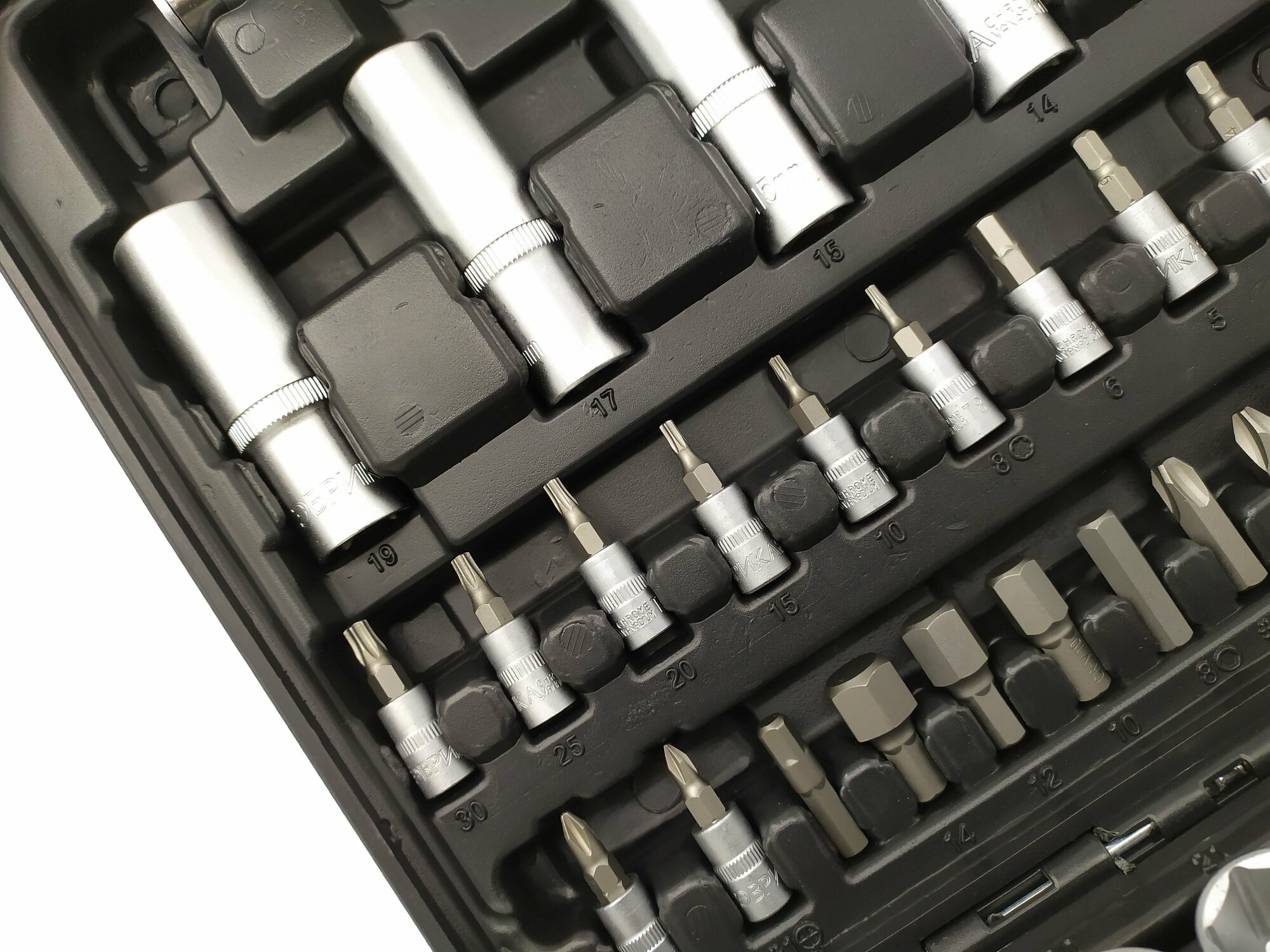 | Дополнительная информация | 1/4":удлинитель: 50 мм, 100 мм, вороток Т-образный с передвижной головкой, кардан шарнирный, отвертка-вороток, трещотка, держатель бит; 1/2": удлинитель: 125 мм, 250 мм, адаптер 3/8”(F) х 1/2”(M), кардан шарнирный, трещотка, держатель бит: 1/2” х 5/16” (8мм) |