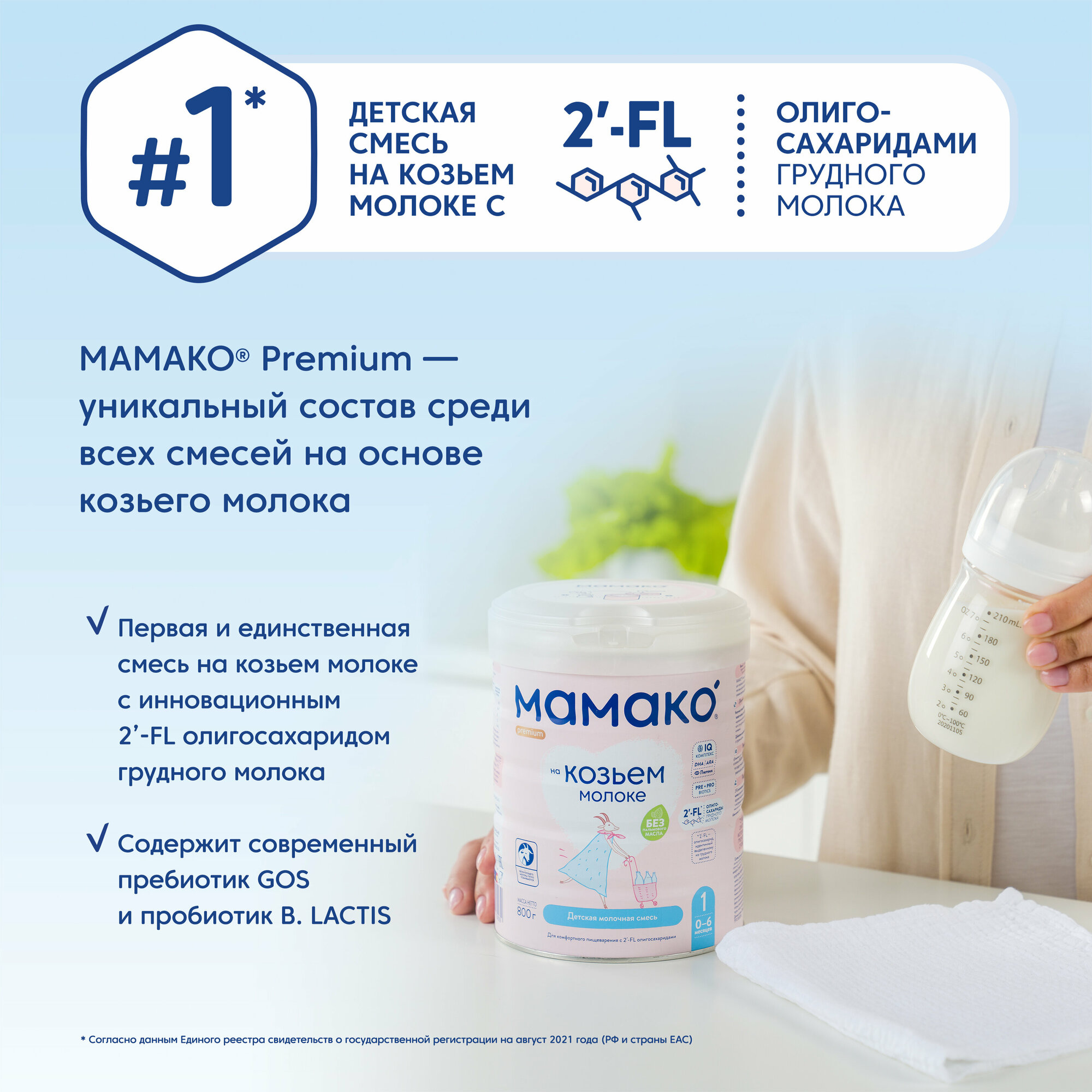 Мамако 1 Премиум - мол. смесь на основе козьего молока с олигосахаридами грудного молока , 0-6 мес., 800 г