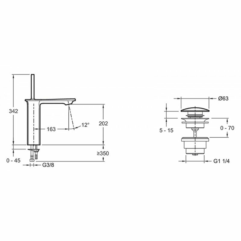 | Длина излива | 163 мм |