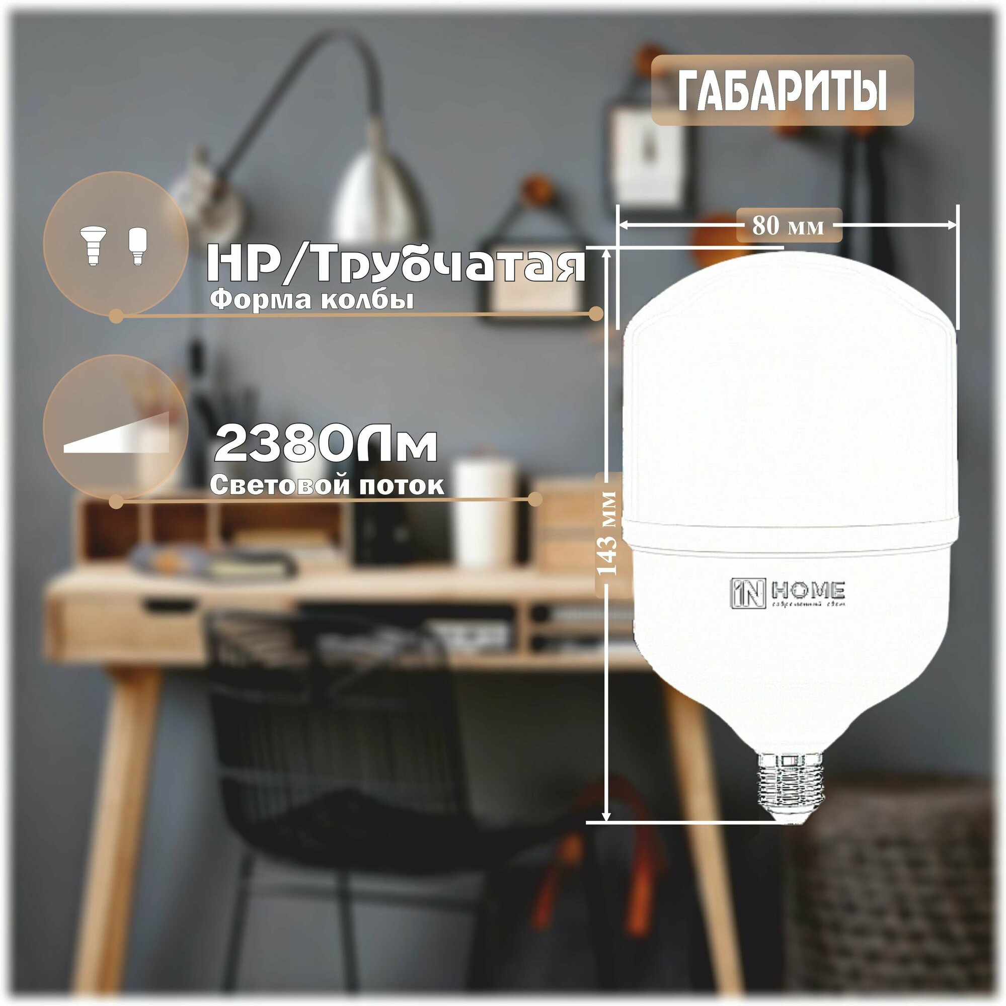 INhome Лампа светодиодная IN HOME LED-HP-PRO, Е27, 25 Вт, 230 В, 6500 К, 2380 Лм