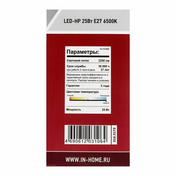 Ниже Вы можете прочитать отзывы на Лампа светодиодная LED-HP-PRO 25Вт 230В E27 6500К 2380Лм IN HOME, ознакомится с подробными характеристиками, посмотреть интересные обзоры и фотографии на Лампа светодиодная LED-HP-PRO 25Вт 230В E27 6500К 2380Лм IN HOME.