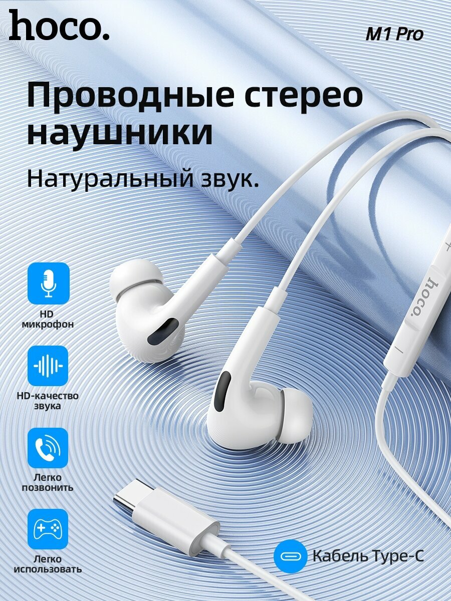 Наушники HOCO М1 Pro original series Earphone Type-C, белый интересное: