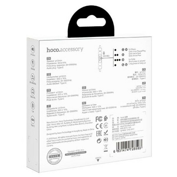 Купить Наушники HOCO М1 Pro original series Earphone Type-C, белый