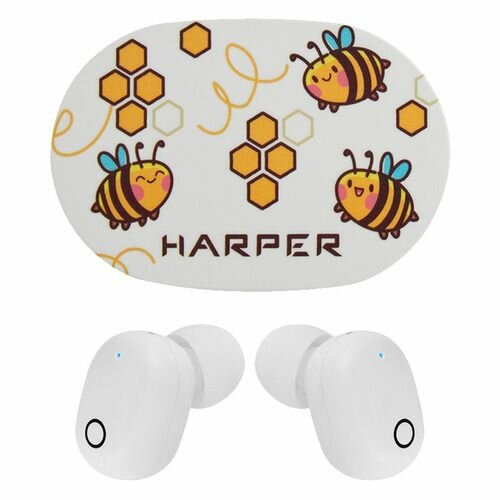 Наушники TWS HARPER HB-534, белый, с принтом на кейсе (bee) интересное: