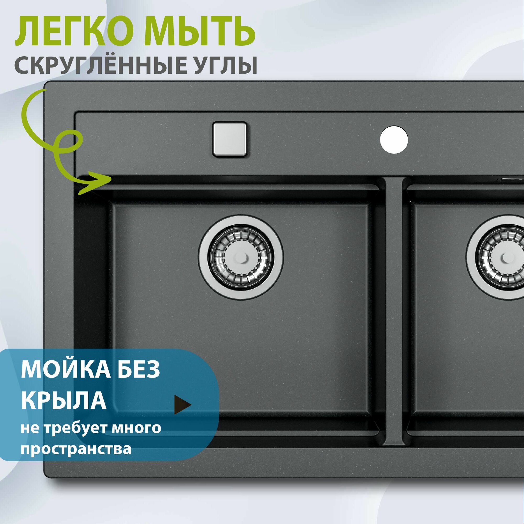 | Особенности | клапан-автомат / отверстие под смеситель / дополнительная чаша / сливная арматура |