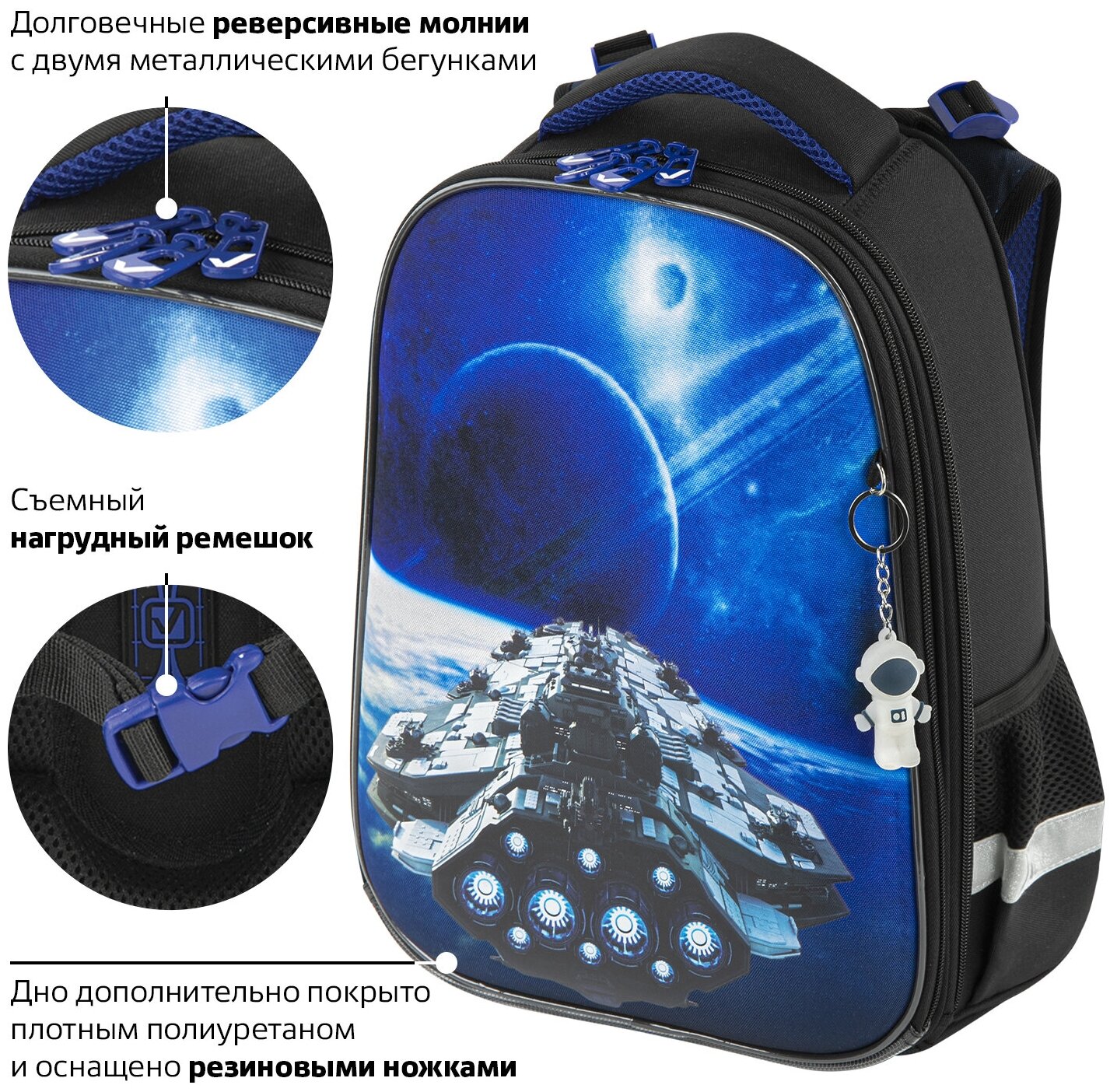 Ранец BRAUBERG PREMIUM, 2 отделения, с брелком, "Spaceship", 38х29х16 см, 270596