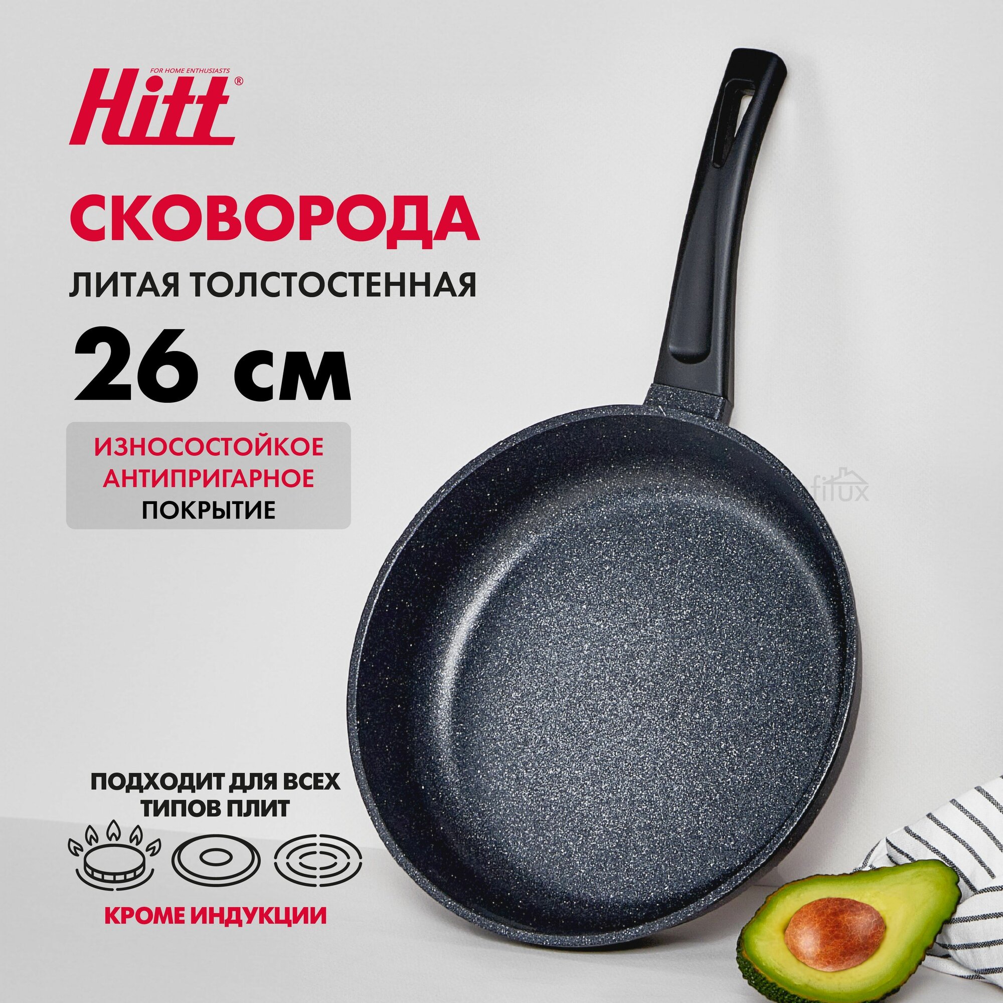Сковорода Hitt Starlight из литого алюминия с антипригарным покрытием, 26 см