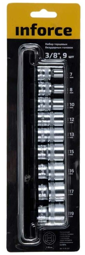 Набор торцевых безударных головок (9 шт; 7-19 мм; 3/8") Inforce 11-01-257