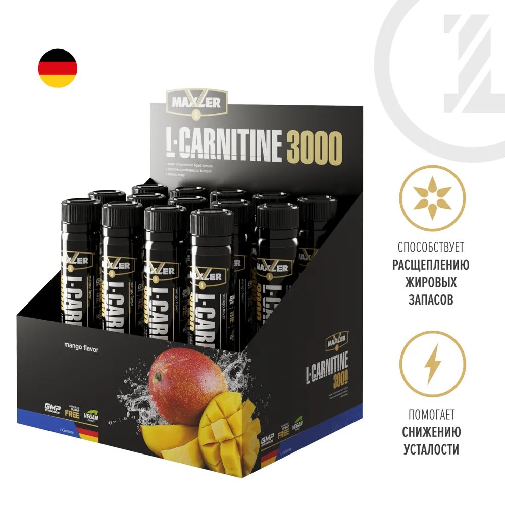 Карнитин Maxler L-Carnitine 3000 - Манго, 14х25мл - Концентрированная жидкая формула - 3000 мг в порции