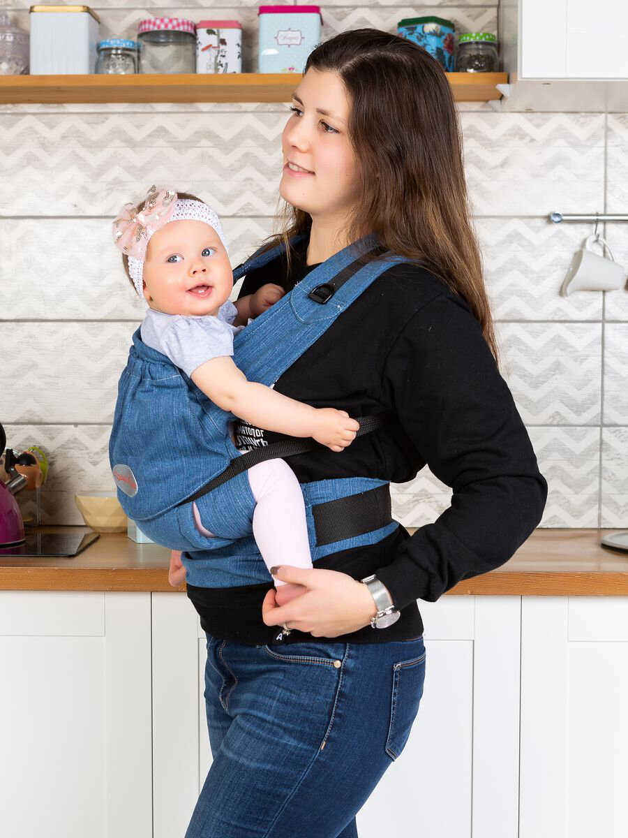 Мне сразу бросились в глаза широкие лямки на плечах и поясе, когда выбирала. Джинсовая ткань смотрится красиво, подходит под любую одежду. Если я скажу, что с таким эргорюкзаком все просто, то это будет неправда. Нужно как минимум денечек разобраться, потренироваться его носить. Я не сразу поняла фишку, что лучше его надевать с ребенком и потом затягивать ремни, а не надеть и потом впихивать ребенка. Это нюансы, но их нужно изучить, поэтому не игнорируйте инструкцию. Только в сказках умеют все и сразу. Одно могу сказать точно – с этим эрго удобно, малышу нравится в нем сидеть. Всегда можно повернуть лицом к улице, если сыну надоело сидеть, уткнувшись в меня. Может у кого-то и сидят дети спокойно в одном положении долго, но только не у меня. Стираю я его редко, особо не пачкается. Бебимобиль хип хорошо прошит. Швы надежные, а на поясном карабине вставлена страховочная резинка. Это на случай того, если карабин расстегнется, чего, я надеюсь, не будет. Рюкзак «долгоиграющий», его хватит до 3-4 года, но точно сказать не могу, нам еще и года нет. Собираем эргорюкзак в хипсит, когда ношу ребенка дома, мне так удобнее, чем сажать в рюкзак. В целом я довольна приобретением. Недорого, эргономично и красиво. Есть положение лицом к родителю и от родителя, а также за спиной. |