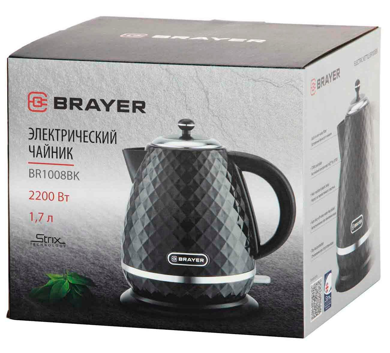 Электрический чайник BRAYER Strix BR1008BK, 2200 Вт, 1.7 л