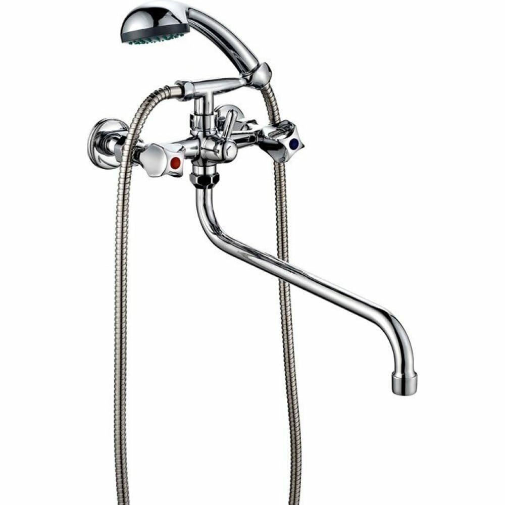 Смеситель с душевой лейкой ПрофСан ПСМ ПСМ-156-К50 стандарт-а, сере6ристый