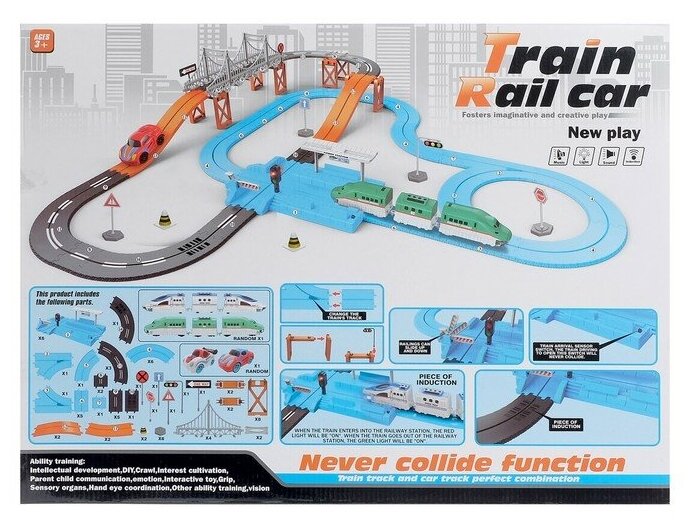 Железная дорога-автотрек «Большое путешествие», с машинкой и поездом, перекресток, светофор (1 шт.) интересное: