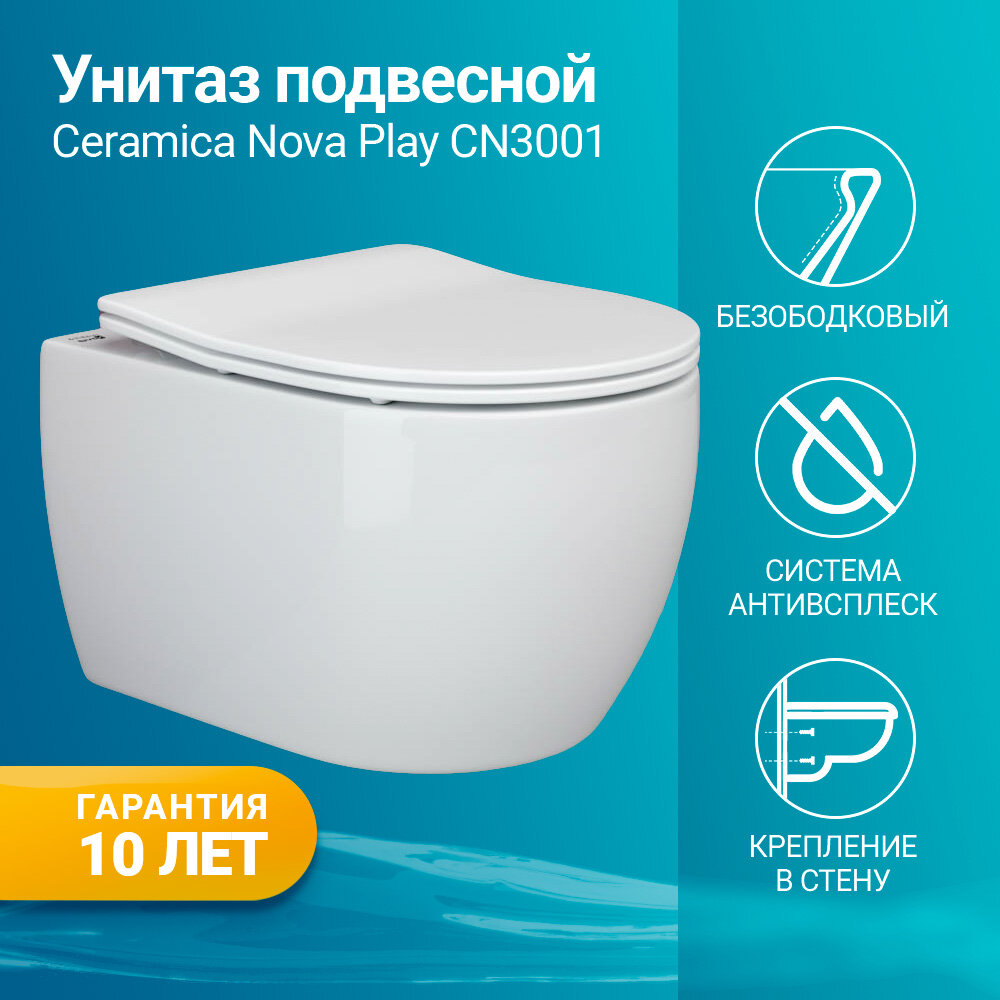 Подвесной унитаз Ceramica Nova Play CN3001 с сиденьем